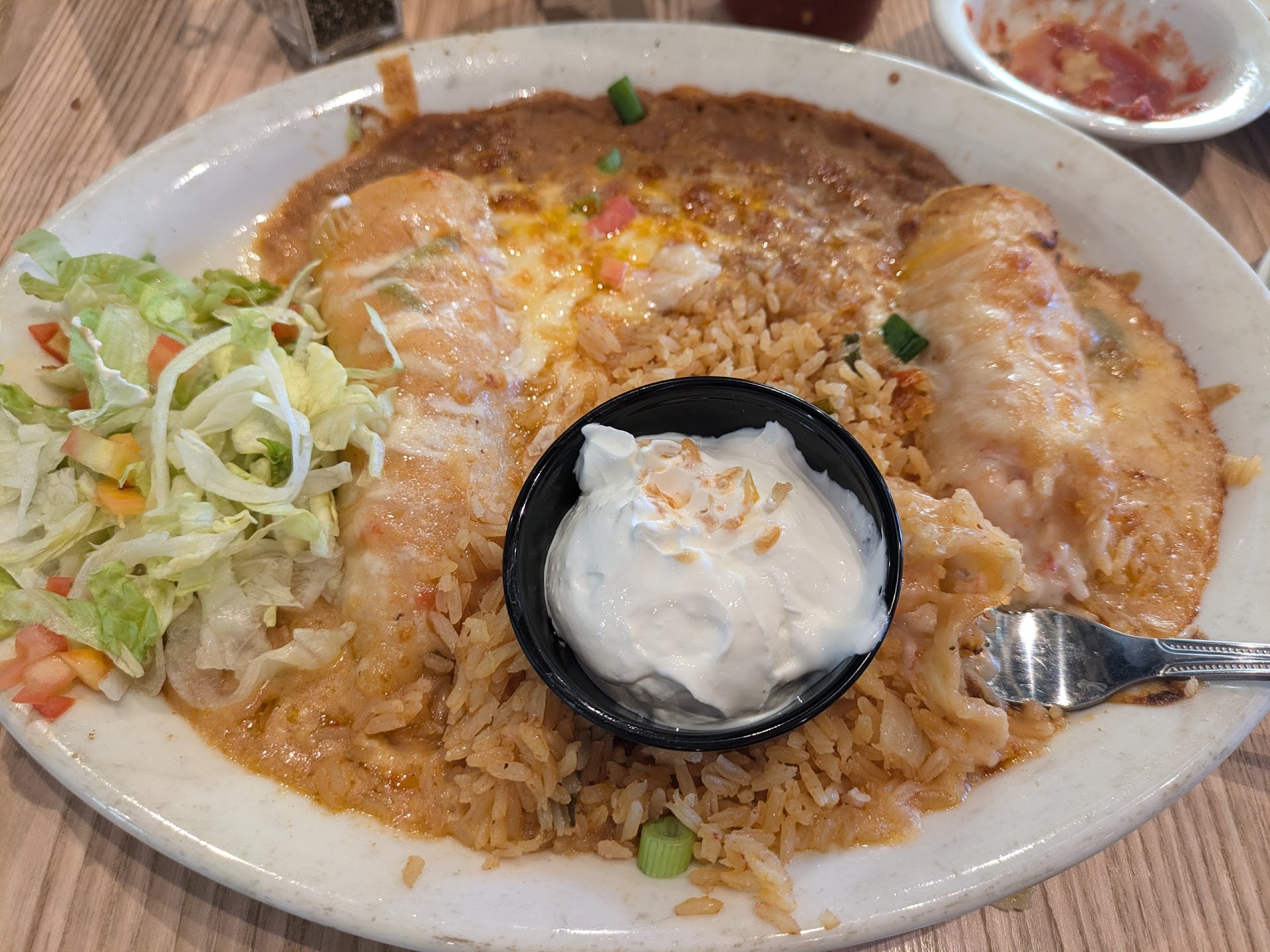 If I could rate it a zero, then I would. I went there in May of 2024 around noon on a Monday. Upon arriving and after being seated I noticed all of the dozens of flies in the windows and flying around the restaurant. I definitely did not like seeing this. If there are this many out here in the dining area, then there are probably just as many or more in the kitchen. A woman brought us out chips and salsa, which were very sub-par for a Mexican food restaurant. The salsa tasted like a variation of Pace Picante sauce. Soon after the waitress came to welcome us and was nice. I had no issues with her. She kindly took our order, and the food came out soon after. Once the food arrived, I immediately noticed this food was not authentic Mexican food. My son ordered a kids meal burger, which was a previously frozen soy burger. Definitely not much if any real beef in there. My other son had chimis, which were again not freshly made and previously frozen. The rice and beans were so bland and awful. I ordered the burro, taco, and tostada combo lunch special. I believe it was the letter G. It was so bland and without any real flavor. The tostada shell was completely soggy and soaked. I had no option but to eat it with a fork. The red beef burro did actually contain real pieces of beef, which is about the only good thing I can say about it. The flavor was bland and very bad. The taco was very bland as well without much flavor. Definitely did not taste anything like real authentic Mexican food. I had no idea food could be this bland and flavorless. I've lived in Arizona my entire life, and have eaten at dozens of Mexican food restaurants; and this was by far the worst tasting Mexican food ever. My mom had the H lunch special, which consisted of a chimi with rice and beans. She agreed how horrible the food was. Even drenching the food with both types of salsa, it did not help. We left feeling very unsatisfied. For drinking water and spending $55 on the worst meal I've ever had at a Mexican restaurant, we were all dissatisfied to say the least. If I was offered to eat there again for free, then I would decline. This is how bad it was. If they want to stay in business, then they might want to get control of their fly situation. Also, they might want to get real authentic Mexican recipes to prepare and serve. The food we had today was absolutely gross and terrible. I very rarely leave reviews, but I had to let people know of this horrible experience. There are plenty of other better places to go in Maricopa. Even Taco Bell is 100 times better than this place. I can't imagine them staying in business very long serving this type of food in a fly ridden...