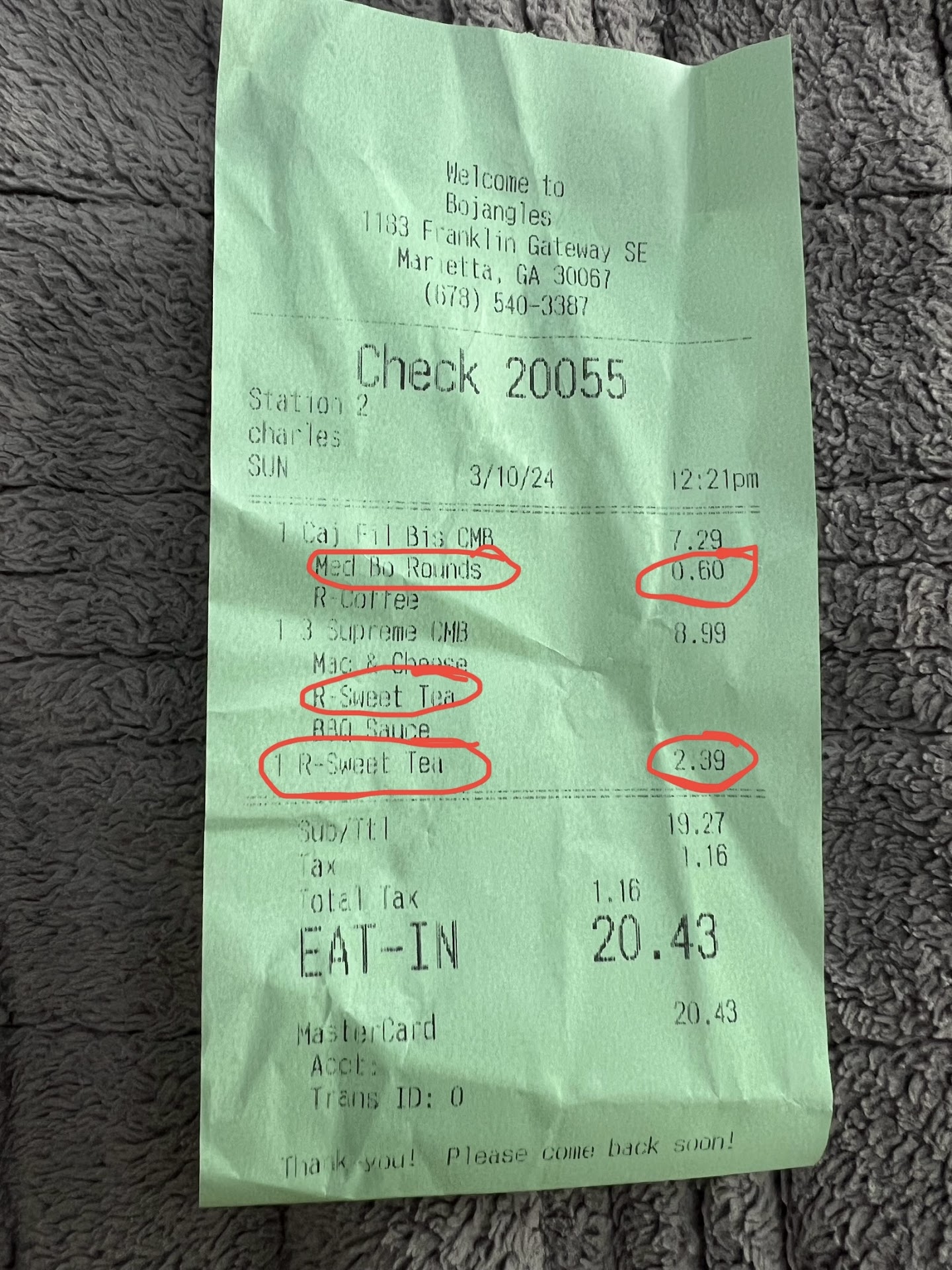 Ā Ā Ā Read moreI didnāt catch his name but he should be in a customer service training position! Heās wonderful! He was about age 18-23? Looked mixed African American, very fair skin with glasses and some facial hair. Omg what a nice experience. I have only had Bojangles once before years ago while on a road trip somewhere. I was driving by yesterday around 3pm so I decided to go inside to place my order. I wasnāt sure what I wanted and needed time to review the menu. This young gentleman behind counter greeted me immediately and with a genuine smile. He offered menu suggestions, he highly highly recommended I get a combo instead of just a sanwhich to try the fries (he swore to me were better than McDonaldās fries), he repeated my order back to me. While waiting on my order, a young brunette girl checked with me that I had already been assisted with my order placement which was very nice. Then the main gentleman gave me my order in hand while once again repeating its contents back to me (extra mayo, add pimento etc). Then he even wished me a safe and healthy delivery since I mentioned to him earlier that Iām 5 months pregnant. What a nice guy!! Very memorable quick business experience. The morale there must be high. Keep up whatever youāre doing at that location. It makes a difference for everyone. Iāll be back. Please Bojangles, keep him, grow him, promote him to trainer and beyond! He gets the customer...