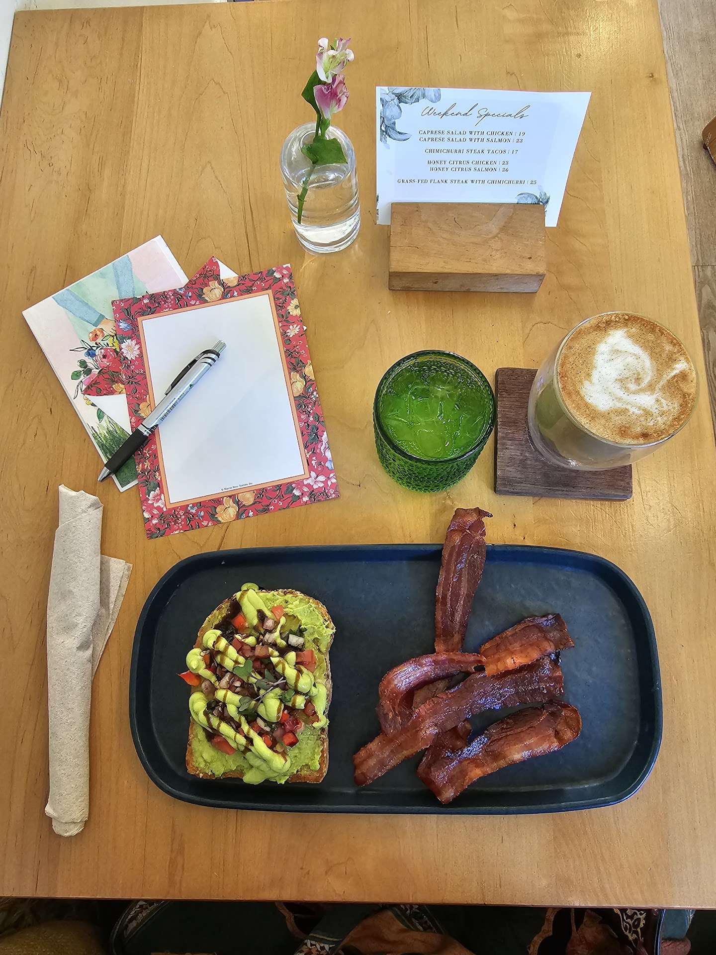 The FOOD is great. Their lattes are delicious - I'm obsessed with their Churro Latte. As part of their regular menu, they are plenty of Vegan and Vegetarian options, like loaded avocado toast and cauliflower steak. In my opinion, some of the recipes are unbalanced, but I love that I can get flavorful, healthy dishes at reasonable prices.