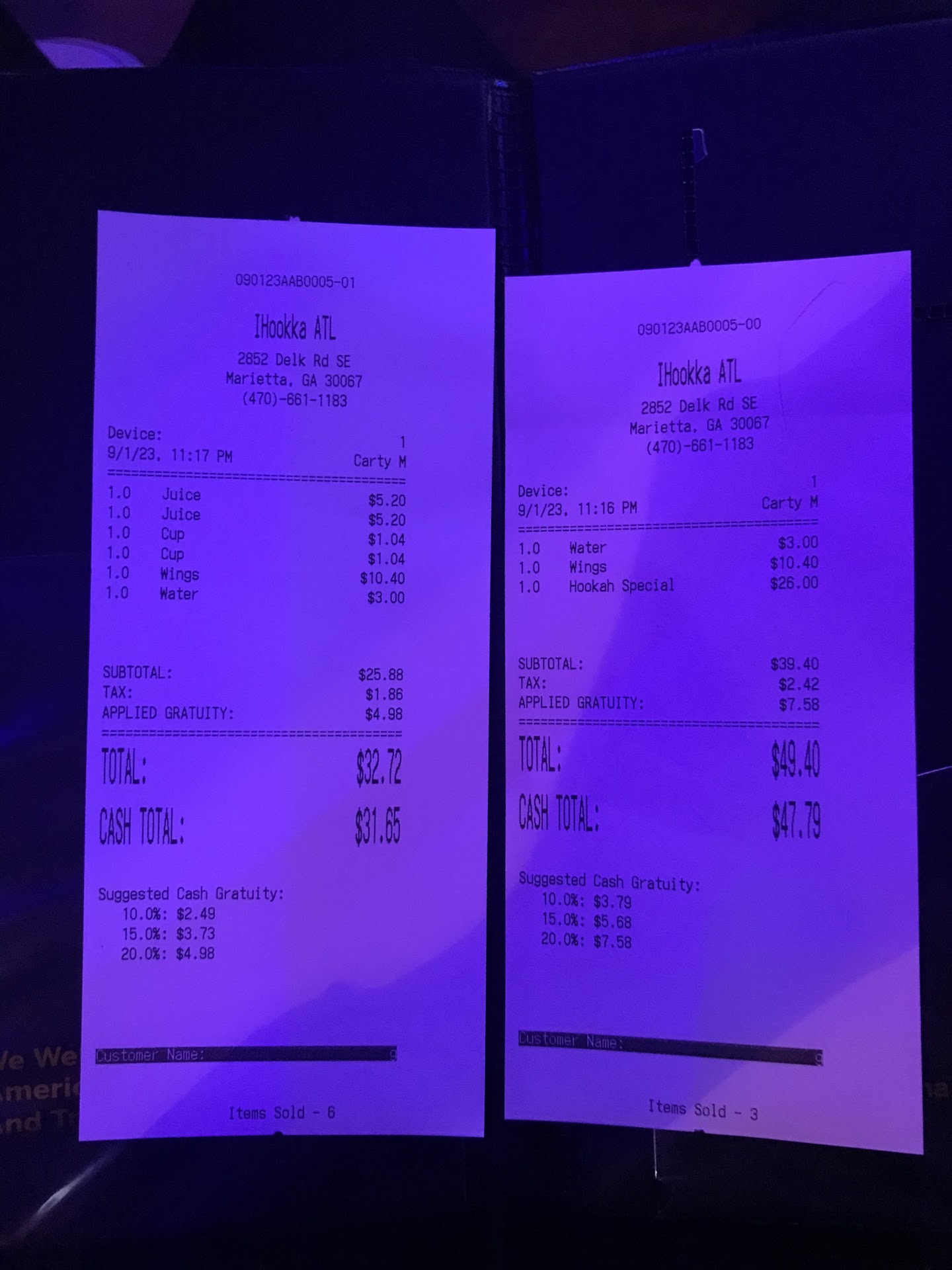 FRAUD ALERT!!! BE VERY CAREFUL, DO NOT GO HERE. THEY ARE RUNNING A SCAM. The menu will say another price and they will try to charge another if you are not careful. The guy tried to charge 40 dollars for Hookah even though it was Sunday and the menu said 25 from Sunday to Tuesday. We ordered only 2 hookahs and nothing else they gave us a bill for 128 dollars. Added 18% gratuity without mentioning it on the menu (I was going to give them 20% anyway so I didn't complain). I did complain about the hookah price. Guy was trying to intimidate me, and tried to tell me it was his business and he can charge whatever he wants. He said you should've asked me the price. I LITERALLY SHOWED HIM HIS OWN MENU WITH THE PRICE. I could tell they do that with unsuspecting customers all the time. In the end when I wouldn't budge he pretended that he was doing me a favour, like me paying the actual price listed on the freaking menu is a favour to me. Was driving through Atlanta, I am never going back anyway. Be careful with dishonest businesses like...