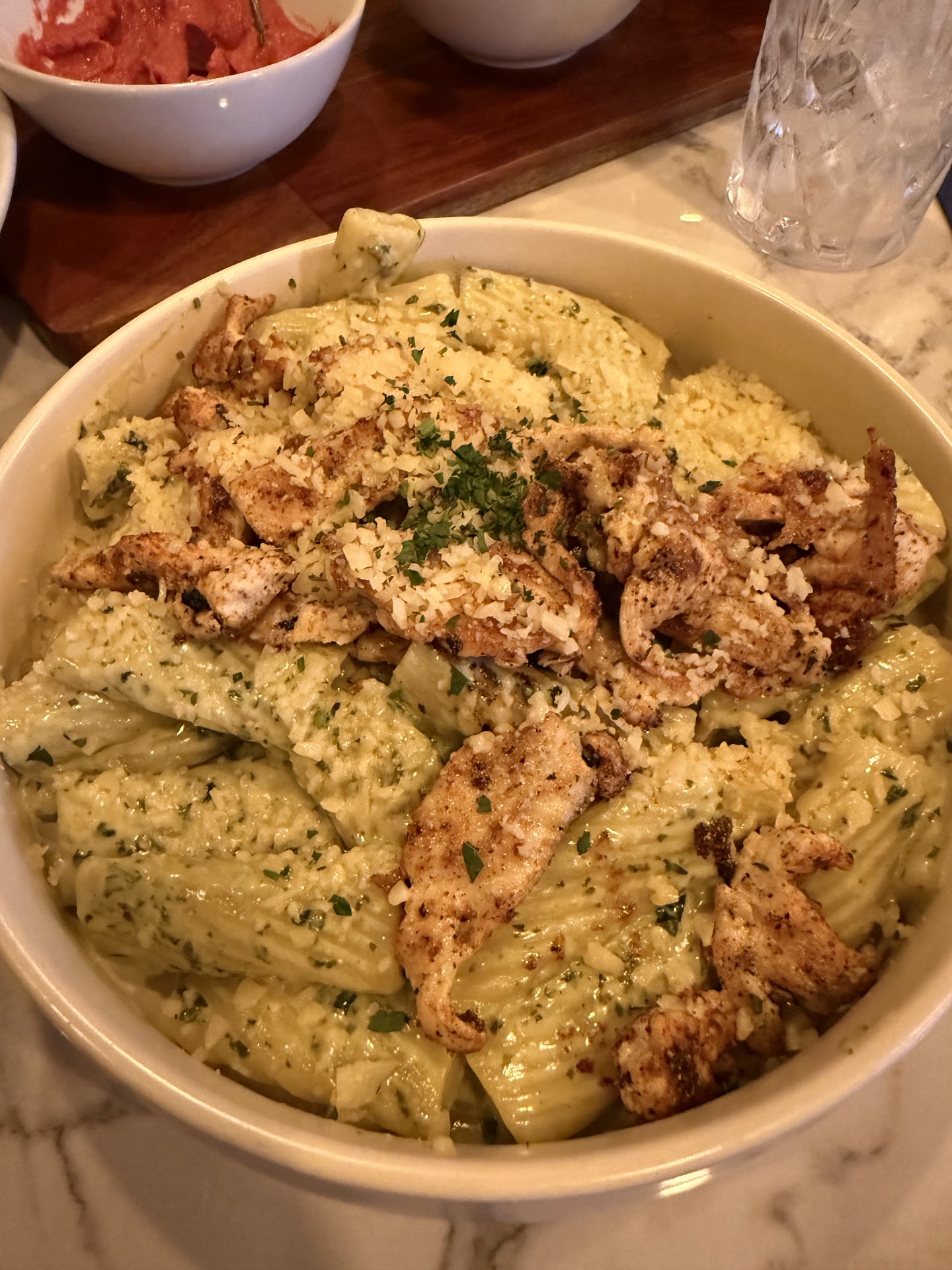 And then the main courses. Wow. Even food critics like Anton Ego of Ratatouille fame would quiver in expectation upon receiving the traditional yet innovative work of art produced through the Lamb Skewers and Pesto Rigatoni Chicken pasta. These are just objectively scrumptious. You will not go wrong with these choices. The lamb skewers can only be described as Mediterranean sushi with a savory surprise at every bite. And the portion sizes are ideal for a southerner looking to fill their large bellies (in which we had leftovers for lunch).