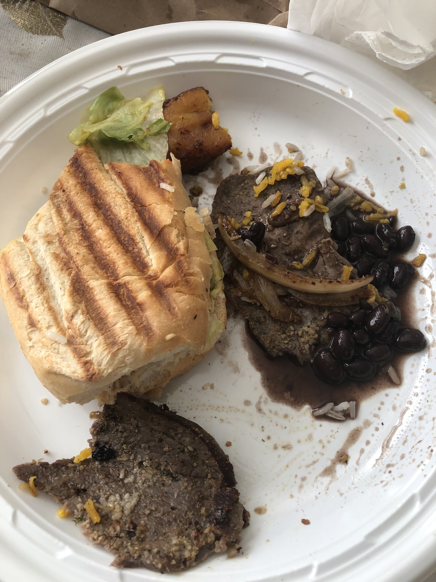 My other half had the Jerk Chicken Sandwich and fries. The chicken was flavorful. It had a bite but not one that would be overpowering unless it were for someone that did not like any spice. The fries were crisp and had a nice flavor. I had the ropa vieja sandwich and black beans. Again, not the best that I've had but certainly was ample and tasty. I would have liked a bit more flavorful. The black beans were simply black beans.