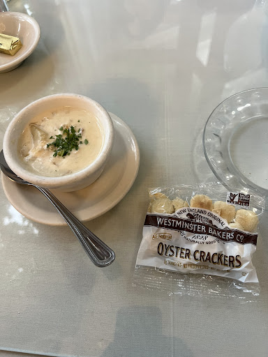 I ordered the French onion soup crock. Another person in our group ordered the Lobster Roll, and she also asked if the clam chowder had meat in it. The server advised us that the clam chowder did have meat, so this person opted for the Southwest Peach soup.