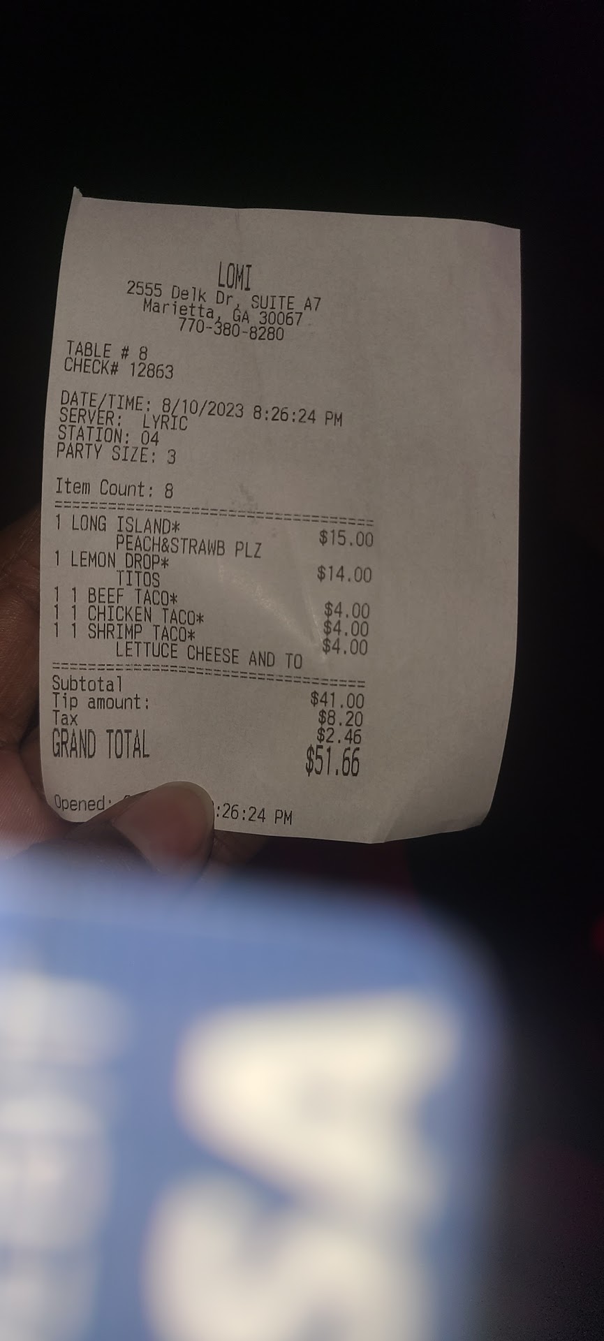 I also ordered a lemon drop cocktail, which had a high alcohol content but completely lacked the bright, tangy lemon flavor that one would expect from such a drink. It essentially tasted like straight alcohol, which was not at all what I had hoped for.