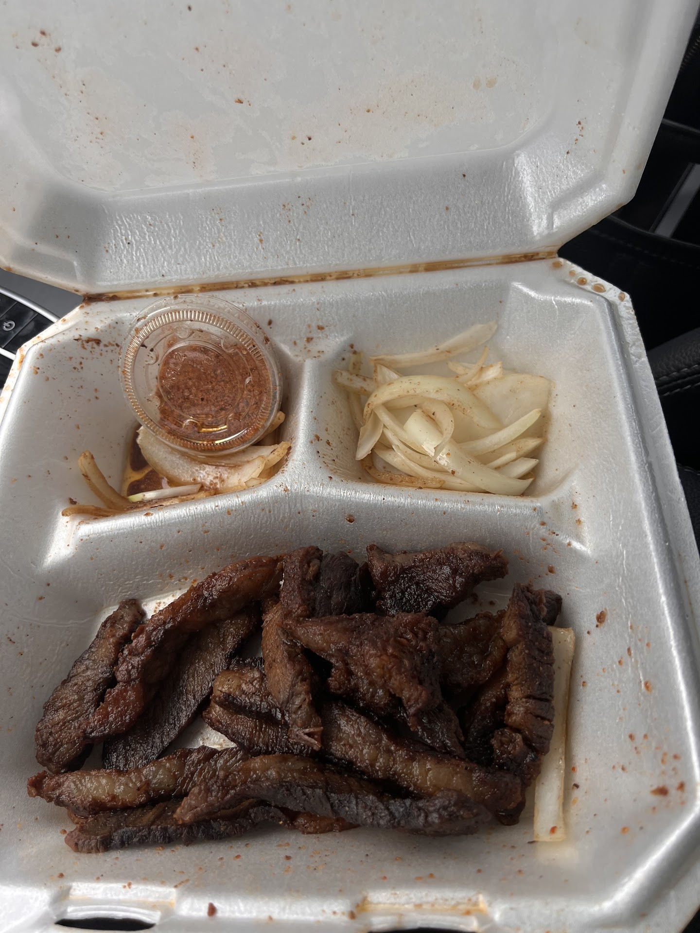 The receptionist literally took half of my suya back because she didn’t like what I tipped. I ordered suya, jollof and puff puff to go and she goes to the back to tell them to prepare the suya i guess then she comes back to pack the rice and puff puff; I pay for my good while we’re waiting on the suya and didn’t feel the need to tip much because I was not dining in. After I finished paying she asks if I want my puff puff warmed and I said yes so she goes to the back(whole time I’m thinking she is warming the puff puff) she comes back with the guy that was making the suya and she packs it for me so I’m thinking the puff puff puff is in there too. I go to my car and I’m checking the bag and I notice the puff puff is missing so i open the suya and it was a lot of suya which I was happy about cause I paid $18 for it. I carry the food to go tell her the puff puff is not in the bag and as soon as I walk in she asks if I want my suya warmed and because I was hungry, I said yes so that I can eat it in the car. She comes back with the puff puff warmed and the suya and immediately i noticed the suya plate was very light compared to how it was before and as soon as i got to the car i open the plate and literally half of the suya was gone and the plate had been shaken(you can tell from how the sauce is all over the plate and was even leaking in the picture). I was shocked and because I was in a hurry, I left and I’ll leave everything to God to handle. Now I’m thinking she forgot my puff puff on purpose so i can go back inside so she can take the suya. It’s absolutely ridiculous that people would come to support your business and this is the...