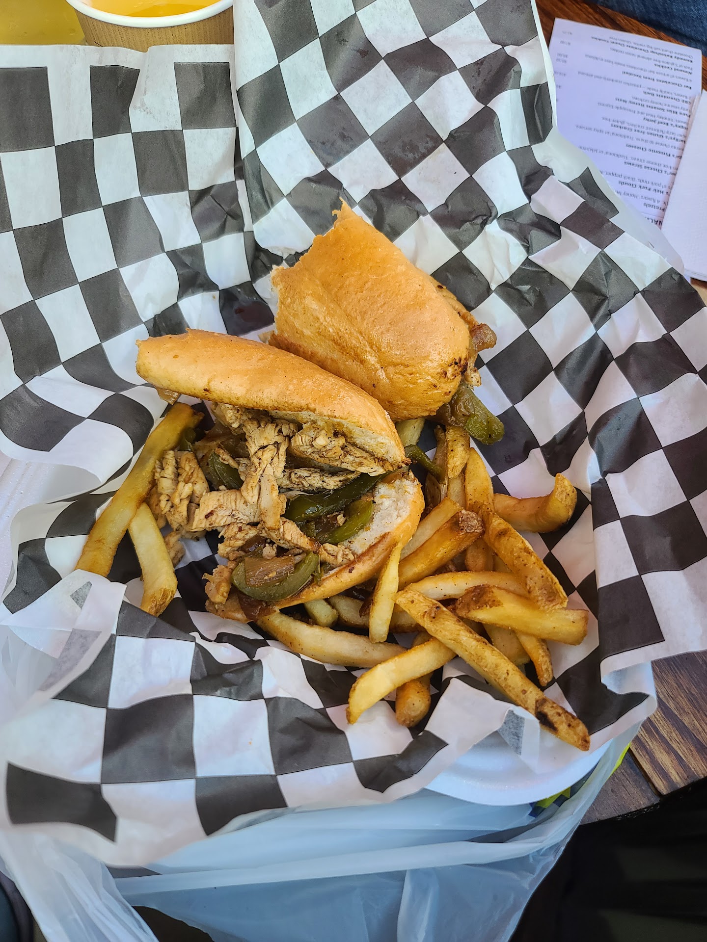 I sat down and noticed that the floor was pretty filthy. Dried up clay/dirt, scraps of food, and crumbs were under every table. Mine was really bad, so I switched tables. I do love the menu, I will say that much. My choice to switch from a burger was made when I saw they served Chicago Italian Beef. Thought that would be perfect for lunch. Man, was I WRONG! I have eaten a hundred Italian beef sandwiches in my day. I am not kidding when I say this was the worst IB I have ever had in my life! It was literally the most bland beef I have ever tasted. I was forced to sprinkle salt on the entire sandwich to bring out any flavor. I loved that the sandwich was soaked in au jus, but it did not help with enhancing the flavor of the meet. The fries were good, really good. Wish they would have used some of the seasoning on the entrée. I didn't even want to finish the last couple of bites due to the lack of flavor. The 2nd server was extremely friendly. Older lady...I could tell she appreciated me being there. Mealnwas reasonably priced.