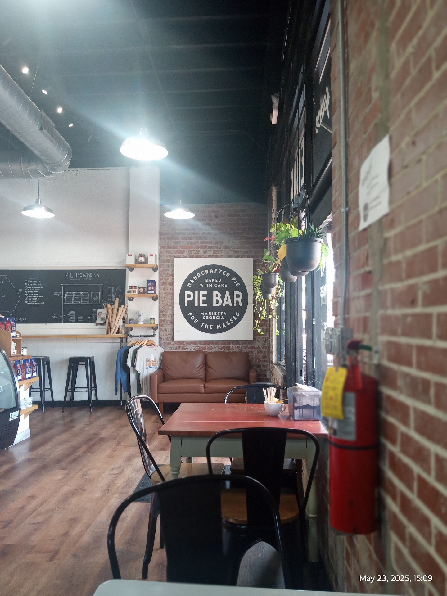 It was a fine coffee break and writing session at the Marietta Pie Bar this afternoon. On this second visit, I sat inside and acquainted myself with a slice of their apple streusel pie.