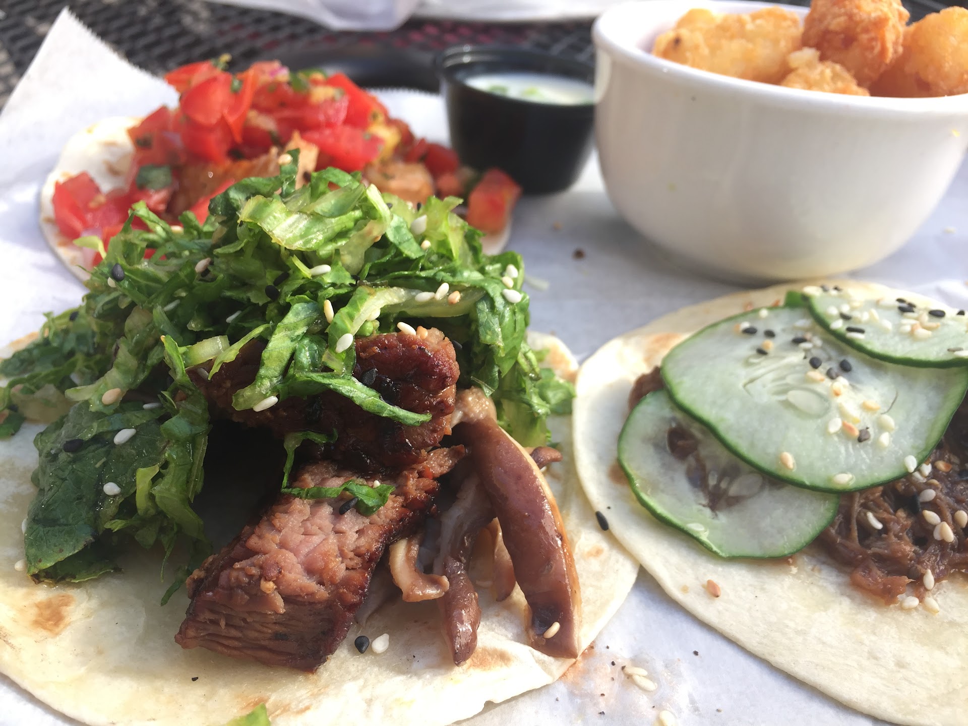 Partially of my own accord and partly at my servers suggestion, I settled on ordering three tacos with a side of Jalapeño Queso Tots. I will describe each delicacy at length posthaste.