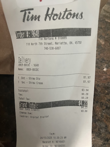 Ā Ā Ā Read moreItās Tuesday 7:30pm, Dec, 19, 2017. So I went in for coffee. I ordered medium coffee while waiting for my friends to come. Before my friends came I finished drinking coffee. So I went asked for refill and everyone went back off the counter into the back..including the manager. I called one of the cashier, she said I canāt refill..than she reported another cashier and finally told the manager..and eventually the manager said no refill. And thatās okay, but their service is very very poor..and communication with customers are bad..It doesnāt deserve one star at all too. This was not my first experience. One day, I ordered milk shack and instead gave me ice tea. On one occasion, I went in and ordered bagels and told one cashier to toast ..waited for 15mins...every who came after me got their orders..and I didnāt. Finally, I asked the cashier and she told me..oh sorry, Iām going to make it now... itās not good experience. I would recommend people not to go to Tim Hortons in Marietta Ohio... look at what people are saying on the comments and decide...