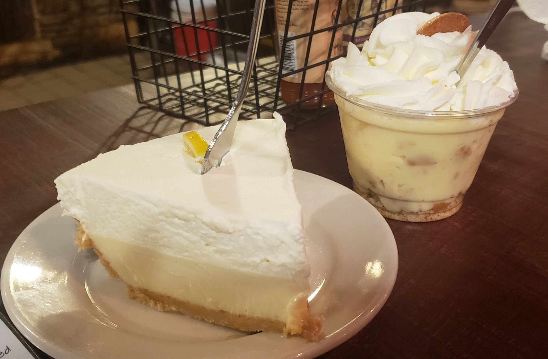 We had spare ribs, pork, fries, brunswick stew, cornbread, banana pudding, lemon pie.