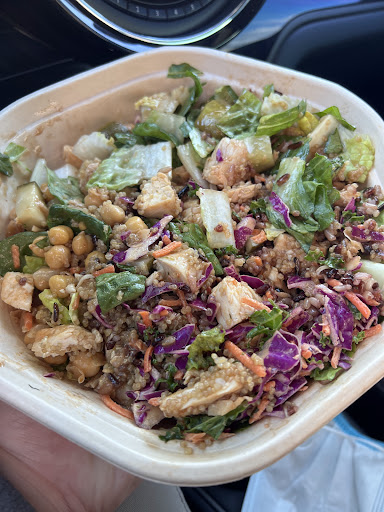 I got the curried chicken salad. I lost my mind. I got in between medium and small for the amount of dressing. It was delicious I highly recommend it!! My friend got the Kale caesar. She doesn't like kale so I though it a weird choice, but she loved it. There are some outside seats and some seating inside. SUPER CASUAL wooden seats etc. You walk up and they basically walk down a table of ingredients and build your concoction then you pay and sit yourself down and eat. They have seen unique teas and juices but I just got water. Everything g was so fresh and delicious. Perfectly sized portions. Next time I will add extra chicken because I need higher protein. But it was enough on it's own I'm guessing for most people. This will be my stop anytime I am coming to the Marina to hit that Sephora or the Amazon bookstore. Come eat then shop. There is a parking lot bit it we had to park on the other side of the parking lot. Still not but a 2 minute walk. They do have handicap accessible parking and that's good to know if you need that. I like to get extra steps in so I never sweat parking. I am excited to go back!! Oh and my friend paid but I think now she said there is no cash payments. Hmmm let me double check. Ok I just texted with them and yes credit cards only till next year. Another you go. Please like if my review was helpful and comment or ask any...