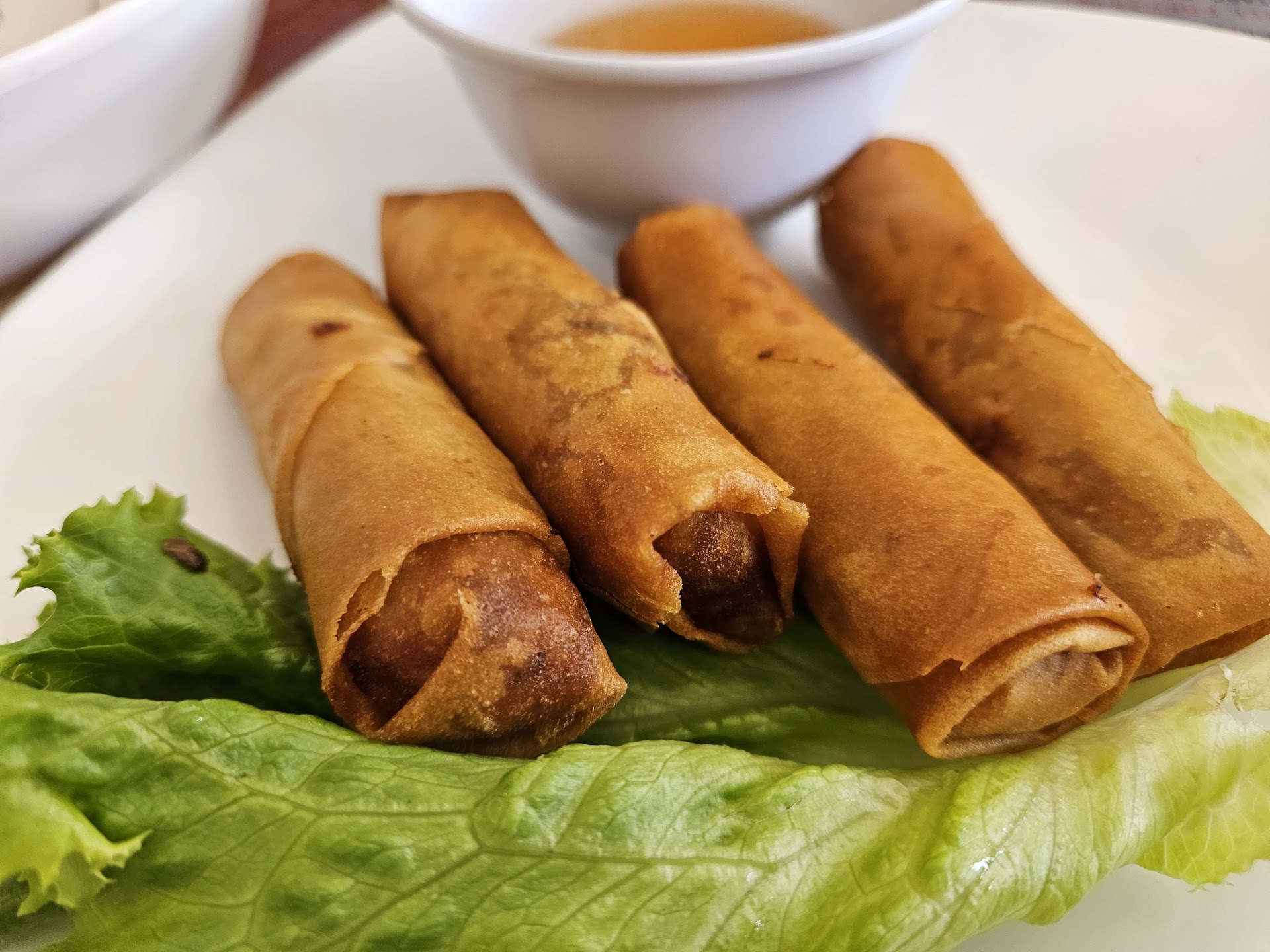 Shrimp Spring Roll These rolls were light, refreshing, and packed with perfectly cooked shrimp, crisp vegetables, and fresh herbs. The rice paper had the right texture and the dipping sauce was just the right mix of sweet and tangy.