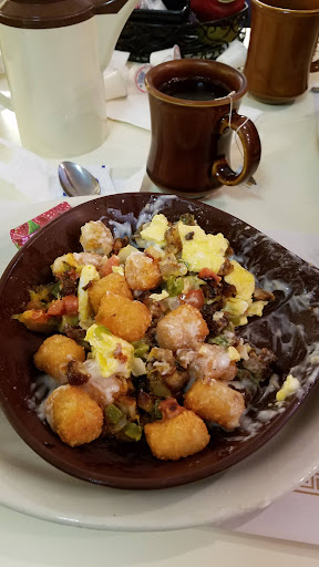 Food: it was 11:00 am when we arrived and we were not sure if we wanted breakfast or lunch. We just knew we were hungry. The menu selection actually quite varied but we quickly focused in on breakfast. I was torn between a skillet and the Country fried steak. While I was exceptionally pleased with my choice, I wish I had ordered both...one to go. I will just have to make an excuse to return. My pictures of the food were taken after I added pepper to my Country fried steak. Likewise, my friend already added sour cream and pepper to her Skillet. I really wish I had ordered one to go. Everyone loved their choice. My bride ordered the steak and eggs. Try the hash browns. They were perfect. With onions.