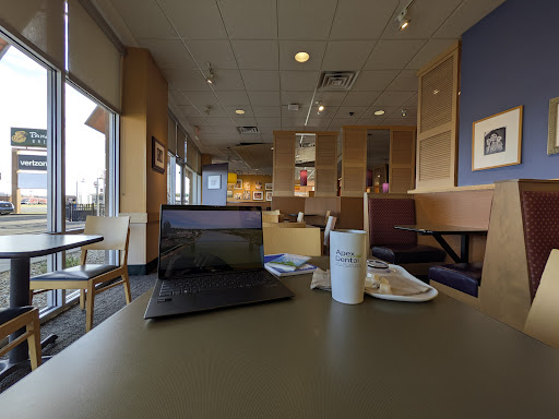 Was not busy when we ate here. But took cashier 3 times to get my Panera number correct and I was not speaking fast. When one person ordered sandwich and salad she assumed it was a pick 2 which it wasnāt. We had to wait for a chocolate cookie to be baked. The avocado turkey bacon sandwich had one small sliver of avocado and the bacon was like leather and not chewable. Having eaten at many paneras this one has room for a lot of improvement. Mr. Covelli ,you may want to look a little closer at this locations management. Dirty dishes left on the tables the whole time we were eating. At other locations staff is cleaning tables and clearing dishes left behind even though we know we are expected to clear our own. I enjoy Paneraās menu and seasonal changes but will not return to this location unless improvements happen. Didnāt use restroom but others reviews have mentioned it needs improvement as well in maintenance issues. Mr. Covelli I hope u take note of...