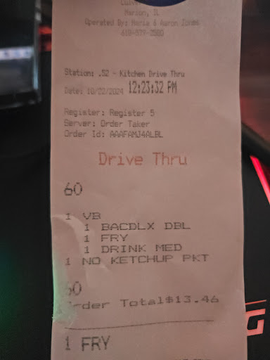 Read moreWorst drive through experience ever! I've heard good things about thier burgers so I thought I would give it a shot. I ordered the double cheddar butter burger with bacon, just as it read on the menu. The cashier asked me if I wanted everything on it. She named ketchup, mustard, pickles, & onion. I said no pickles please. I thought it was a nice gesture for her to mention all the toppings. I get my order after pulling forward to wait. I get down the road & no bacon. For a $10 "value" meal, I expect the bacon I paid for. I return to the window to let the new cashier know there is no bacon on my sandwhich & asked her to please add the bacon. She then asks what I want on it...I told her everything plus the bacon. If she would have taken the time to look at my recept she would have known exactly what was suppose to be on my sandwhich. Instead, when she returns & I get my order, I pull into an empty stall and now my burger is iverflowing with a mess of tomatos, lettuce, a pool of ketchup & mustard & guess what...even pickles! I expect this from a Mcdonalds but not whats suppose to be a high quality fast food establishment. I will not be visiting a...