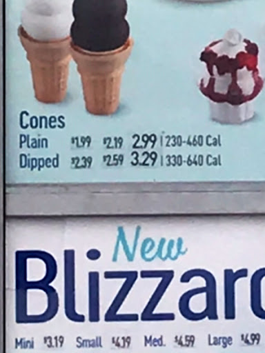 For example today. I went up to get ice cream treats for two of our employees. Simple order; 1 medium strawberry sundae w/ extra strawberry, and 1 chunky, Heath candy blizzard w/ extra Heath. I had to repeat both items to the whomever was working drive-thru and I was given an incorrect order total thru the speaker. When I pulled up to the window they again corrected the order total to a different amount. They informed us they "rang it up wrong." We are given the sundae first and we were shorted the extra strawberry as we requested. We are next given the Bilzzard, not turned upside down.... Liquid ice cream was dripping down the outside of the cup and I'm asked, "Do you want napkins?" I rotate the cup to show them the mess and said, "Um, yes please." They hand the cup back to me and I asked, "Did we flip that?" Their response, "I didn't flip it cause the ice cream is too soft right now." Yes...I get that, and not my problem. Your business is literally ice cream.