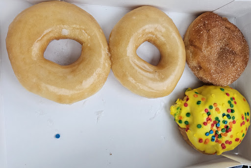 Read moreNice place, The Doughnuts were great, Friendly Service. Young people working there that you can tell that they need training and Guidance. I was there when they opened and had to wait for the lady to get the Glased Donut machine going... The 2 young ladies in the front were kinda standing around, The Welcome nats were still rolled up and needed to be put down, The station where the straws at needed attention and there was a Table obviously left from the night before that was dirty. Details were not being addressed. The Glazed Donuts were very skinny... But it still tasted amazing and I asked about the Free Sample Glazed Donut and was informed that they don't do that anymore cuz of Corporate... So don't expect the sign to be on anymore. I noticed that the Oreo Donut has no White drizzle on it and I asked why and they said the Night shift didn't take care of it, I said but I guess you can right? And she said yes and I pointed out more to her when she got done with the one tray Then one of the sweet employees brought me a Free Donut for being nice to them. :) Don't expect perfection but if you are nice and give them respect you will receive the same. From a Top 10 Reviewer for Google Maps I recommend this place. Keep up the good work and friendly...