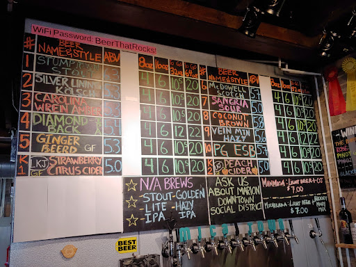 Very friendly and knowledgeable staff. Totally cool hometown vibe. It’s an old building and there is also an upstairs area. Upstairs has corn hole, darts, arcade, and various board games. They also have an outdoor space with lights. There are signs that welcome “nicely behaved” families. That is posted to protect the adults that are here for a positive experience - no offense. It’s a tiny bit past Asheville, but so worth adding to your itinerary. Love this place so much!!! Totally forgot to mention that they have “beer inspired cocktails” for people not interested in beer. So many things to choose from! The music sound system was awesome too! If I lived near here, I’d want to hang here...