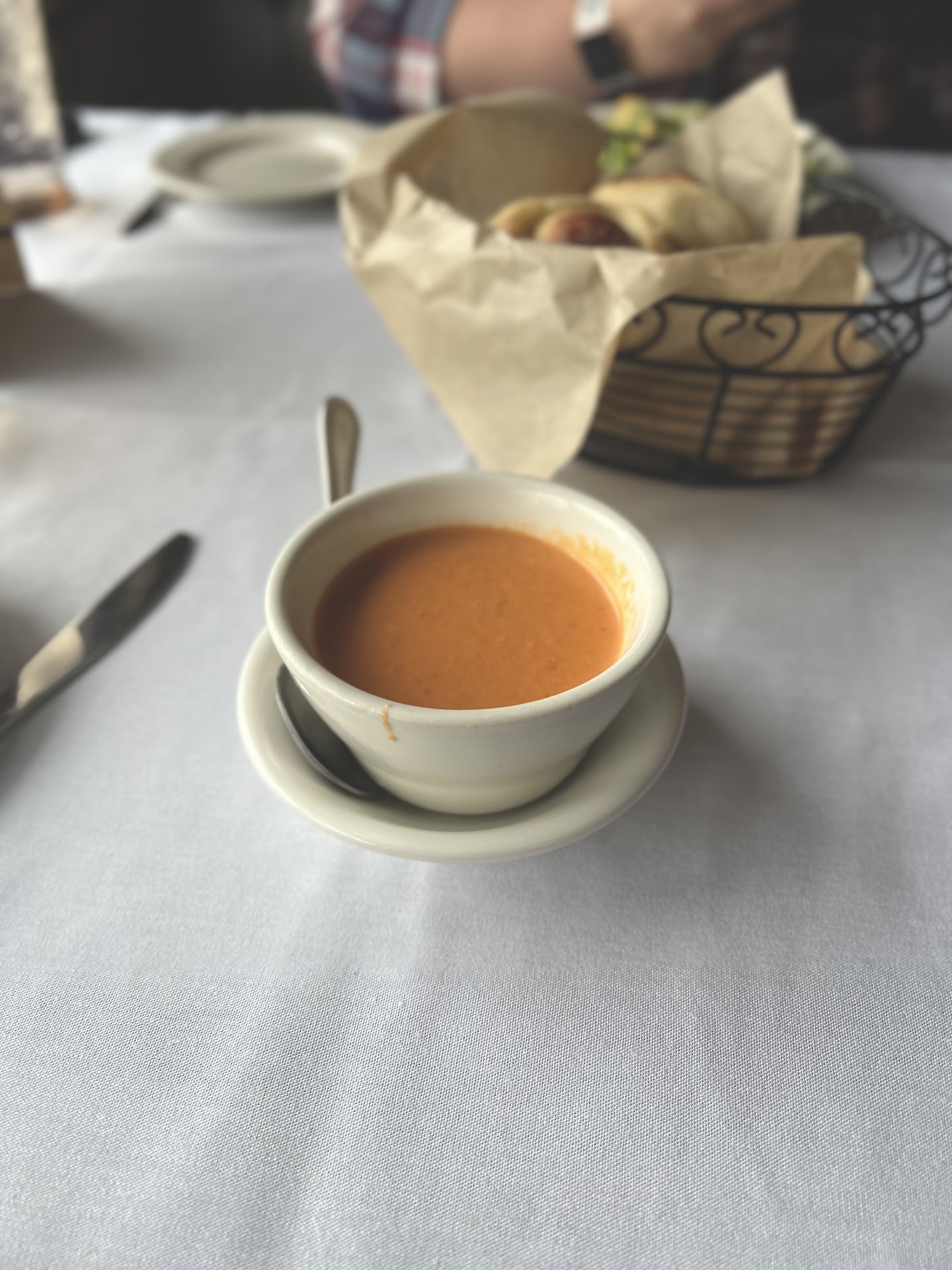 I also chose the Fresh, made by scratch tomato soup. The consistency was like a bisque, rich, and super tasty. I loved it! (I wouldnât mind slamming some grilled cheese in it and bring back memories of the good ole days).