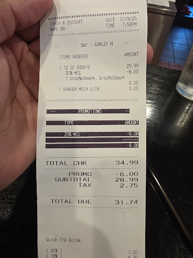 The steak alone was $30.00. Im a Veteran so they did apply a vet discount, which I appreciate but that's still a high priced item for a 12oz steak.