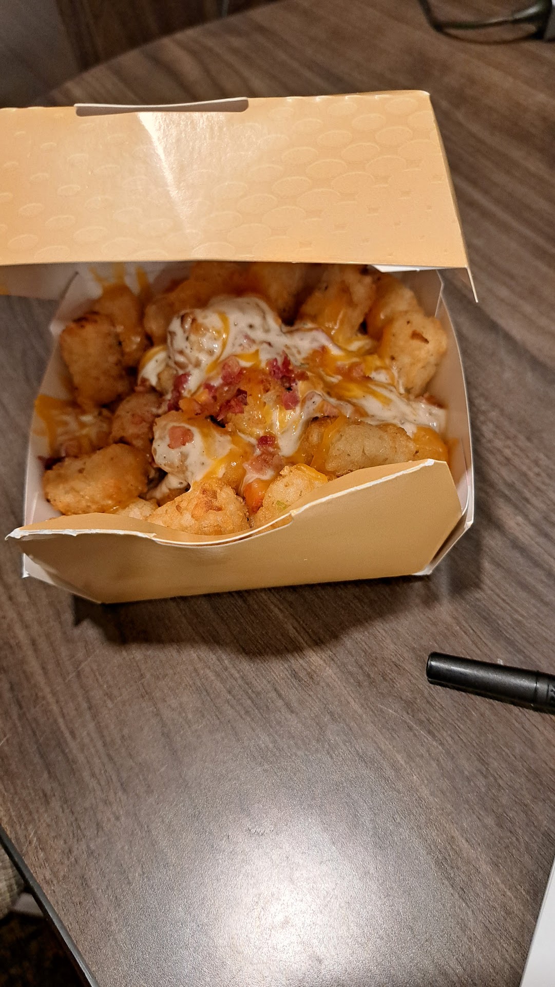Absolutely disgusted with this place do not order from them the food is completely gross. The chicken wings were undercooked and pink inside the chicken tenders were dry like they've been sitting around all day on top of that I ordered two bacon ranch totchos and I received an order of tater tots.