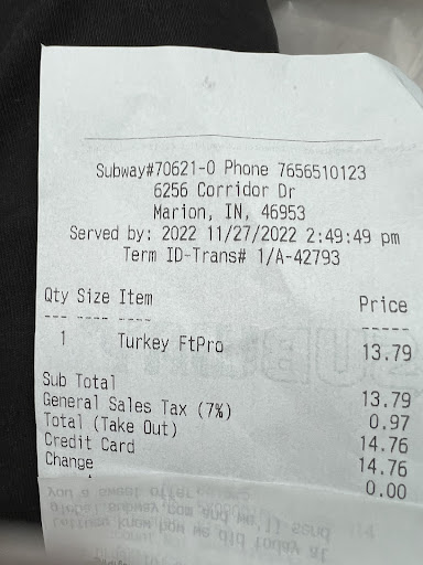 Read moreI had been in tonight to get my usual sub after school. The women behind the counter while new to the shop had assured me through out my entire ordering process that my sub was a pro, I've order this many times before and what she was making was not a pro. Not only did she lie to me she looked at me when she told the cashier that it was just a regular sub. If I am going after school for my favorite quick bite I will be leaving upon seeing her. I will not be lied to and ignored about asking if a sub...