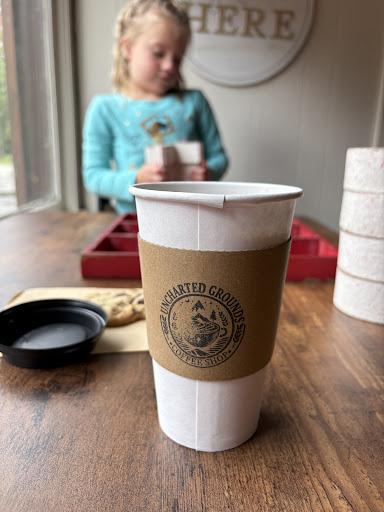 The next morning, as we were leaving, we went somewhere closer and had extremely disappointing Chai that was basically just milk barely a hint of Chai flavor, and the place was so crowded and the people there were not as nice. So we said Unchartered Grounds was so much better in literally every way. Why don't we just go back there?