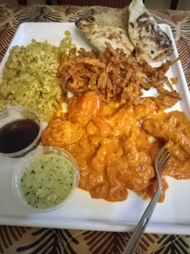 Read moreGot 4 eggs bhuriji, veggie pakora, butter chicken and naan. It came with 2 sauces... I think they were, kecap manis (sweet soy sauce) and raita. They asked if I wanted full spice, I said mild. Both that pakora and eggs came in 5+ x 9+ x 3+ hoagie boxes. The portions were great- pakora container was stacked full, the eggs were filled to the rim. The medium butter chicken combo was in half # deli style container. It was all so good, I felt I should plate it up for a picture. The eggs were just scrambled eggs with onion and peppers and spices. The pakora was almost like asking for crumbles from long John silvers and put onions and other veggies in with them. And the butter chicken... It is sweet with spices that kick in after a bit. The chicken itself, is very tender. The naan has an understated garlic flavor but also a...