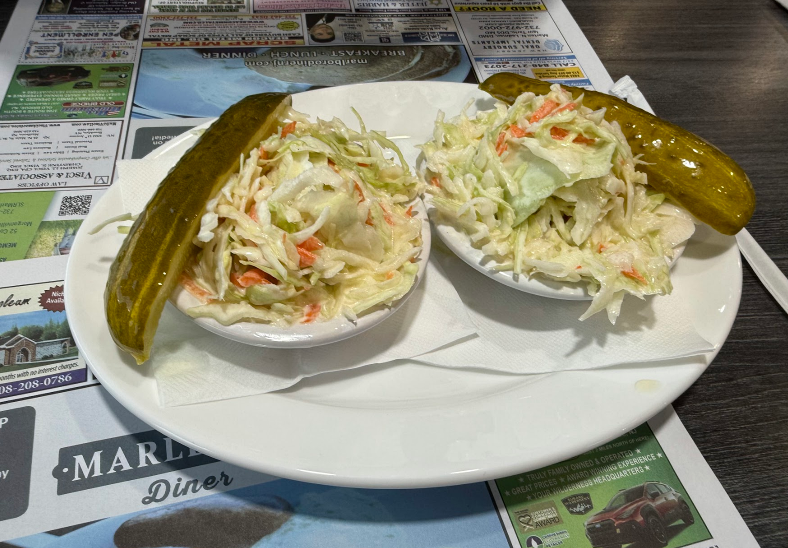 Read moreWhen I first approached the Marlboro diner, I didnât know what to expect. The diner is located at 143 US-9, so the diner was really easy to notice since it was right off the highway. On the outside, the parking lot was jam-packed, but I managed to find a spot in the back. I went on Monday, March 17th at around 6:00pm, during the dinner rush. Iâd expected the place to be empty, since it was a Monday, but I was greeted with a very loud atmosphere. It was clear that the diner was always busy. Upon entering, I was seated immediately by the host which was very surprising, given the environment. A staff member at the front desk quickly found us a nice table by the windows. Inside the diner, there were a lot of vintage posters, and I felt a strange sense of nostalgia for a time where I wasnât born yet. The diner didnât lean too much into the vintage aesthetic, as the benches and tables were modern. The lightning was also gentle, so it felt pretty calming inside. That being said, the other patrons inside were very loud. The tables were very clean, and I could also see staff members working quickly to prepare the tables for the next customers. The waitress greeted us immediately, and asked us for our orders. I ordered a grilled chicken sandwich combo, which included coleslaw, a pickle, and fries. The chicken sandwich was listed under their âspecialty sandwichesâ, so I was happy to try their best food. I also ordered sweetened iced tea and a bowl of chicken noodle soup.