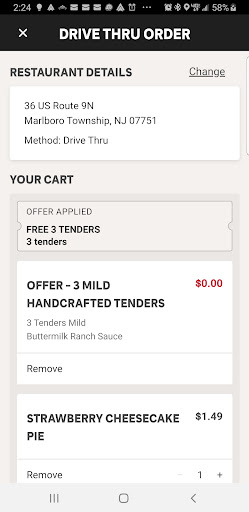 Read moreI went there to buy the 10pc family bundle from the app but the app wasn’t working. The man speaking through the drive through intercom was very quiet and almost understandable. We ordered the 10pc thinking it was the family bundle, a spicy chicken sandwich, and boneless barbecue wings. We got up to the window and they gave us a spicy 10pc chicken with no sides or biscuits, the bbq boneless wings, and forgot the spicy chicken sandwich. We asked where the sides were and they said it was an app only purchase. We tried explaining the app didn’t work but they said “app only purchase” so we were out of luck and took what they gave us. My wife and I don’t eat spicy chicken and wanted the regular 10pc so we had to exchange it for the regular like we wanted in the first place. The man in the drive through must have thought we wanted a spicy 10pc even tho we said we wanted a regular 10pc family bundle and a spicy chicken sandwich. The spicy chicken sandwich was for my son and as were driving out of the drive through he noticed the spicy chicken sandwich wasn’t even in the bag. So we had to go back and pay extra to get it because they didn’t put it on the receipt despite me ordering it in the drive through. The young lady there was nice and helped us but I don’t think we’ll be coming back to this...