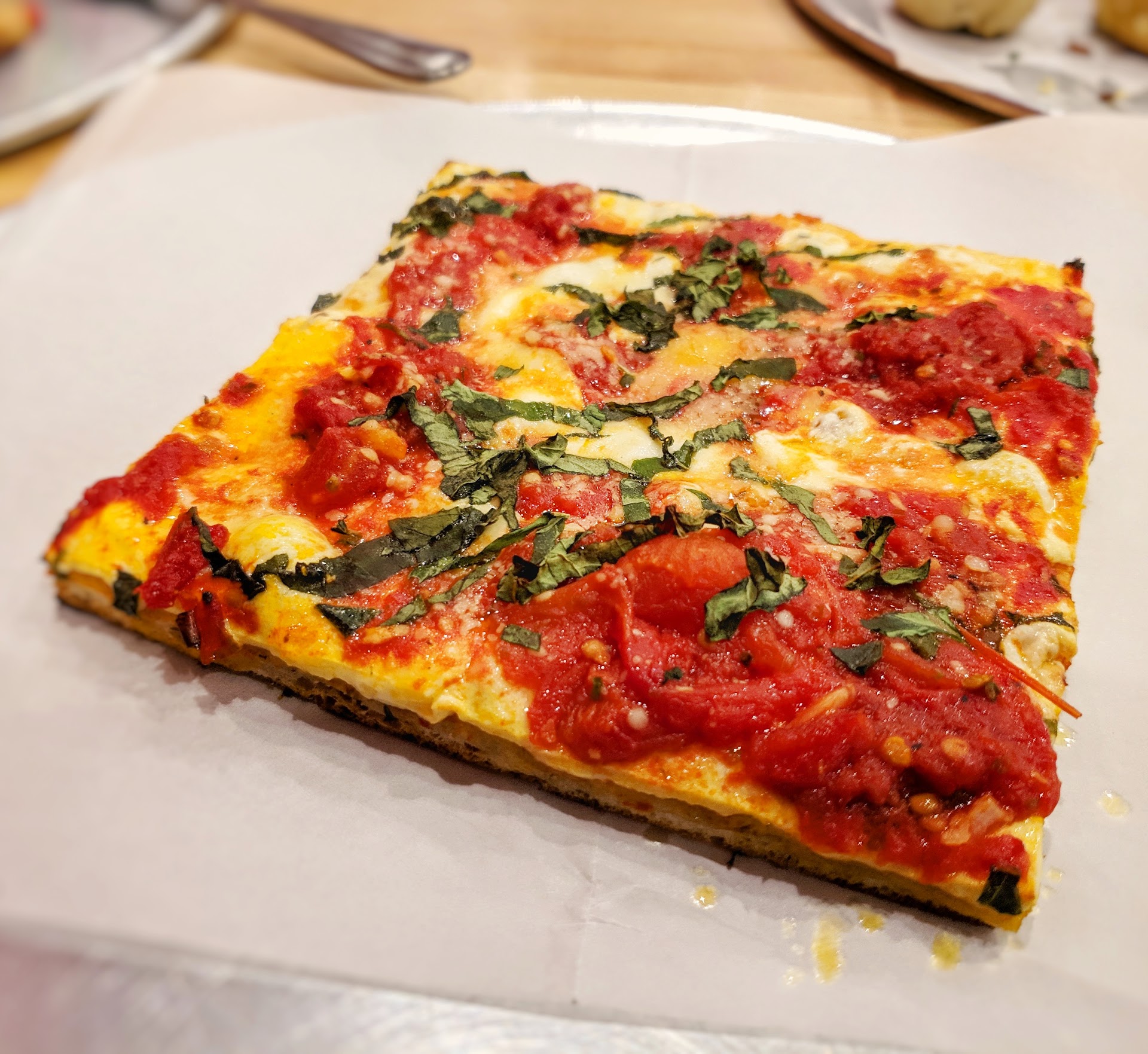 The pizza sauce for the Grandma slice is just so flavorful! It has good body supported by a pizza base that has solid 'biscuity' (think British not gravy) crunch in each bite.