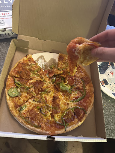 Being a fairly new resident to the city of Marlboro. And living in one of its many available retirement locations. You can gather so much information about every day needs you may have. Living in such an environment. One of these being the question of. Who and where is the most recommend Pizza business in town. The majority of referrals for me to try was the "Family House of Pizza ". Being tucked in the corner of a small plaza at 329 Maple St. It was time for me to see if what I was told from my neighbors was true. The staff at Family Pizza are welcoming and very friendly. Offering warm greetings with smiles and gratitude that you are there. Inside it is very clean, but somewhat having the decor of years gone by. But still comfortable enough to relax and enjoy your meals. Having the urge for a Veggie pizza this evening I placed my order with (I believe was) the owner. Very welcoming to all who enter. After placing my order. I sat and watched as customers arrived for their orders. Again, greeting them as they were family and best friends. Which is always pleasant to see and hear of. My small veggie was just the right size for me. It consisted of Onions, Green Peppers, and Cheese. Although I was asked if I would like other toppings also when I placed my order. In which I politely passed on. This pizza was not overpowering by any one flavor of the above. But it was a smooth well balance flavor of all the veggies. The crust was perfect for my likings. Thin, flavorful and not overly cooked. The only problem that comes to mind at this moment. Is what to try on my next visit there. Their selection is moderate, the prices are good. And the service and staff are friendly and welcoming. Thanks for the opportunity to meeting you all...