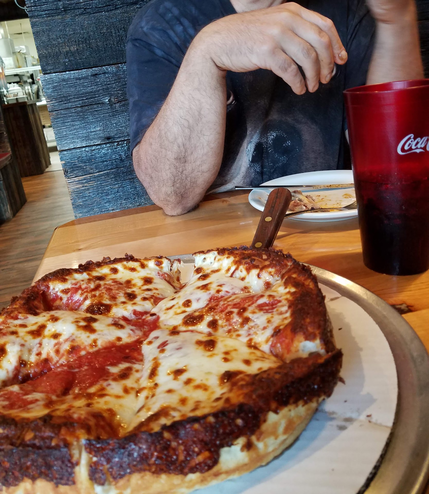 Read moreWe waited incredibly long time for our order and eventually one of our party went up to the counter to ask what was taking so long for us to get our food we were told there was a cook in the back who is new and has been mixing up takeout orders and eat-in orders come to find out our pizza had been sitting in boxes on the Shelf for about 10 minutes when I asked the manager for a discount and told him I had been looking at those pizza boxes sitting on the shelf or quite some time now he looked down at the ticket and said to me it's only been 9 minutes and 45 seconds and then rudely told me he would give me a 10% discount. I have only been into this restaurant a handful of times and at least half of those visits I have horrible service. Was very disappointed with the lack of concern from the manager today and the attitude that I got for complaining that I had been sitting looking at our pizzas in boxes on the shelf for quite some time and his response coldly being it's only been 9 minutes and 45 seconds like that was no...