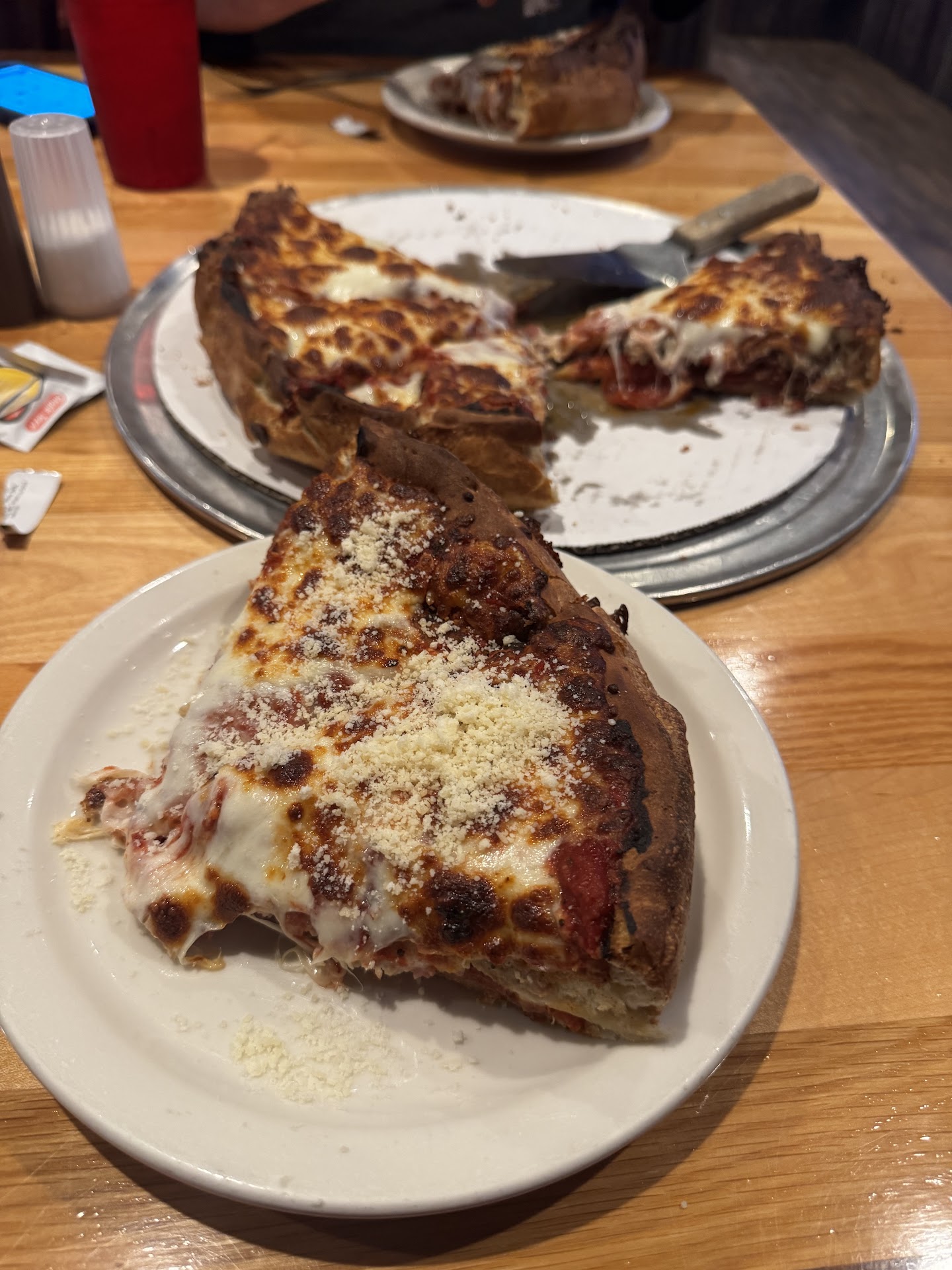 I'am absolutely disappointed with treves. I'm a regular costumer and NEVER had any issues. I had friends from out of state visiting, and after a few years talking how good the pizza was they wanted to try it. We of course got the Chicago style pizza and as usual it was EXCELLENT. we picked a few other side items and was very disappointed. Our total was almost $70 ( which isn't an issue) but everything besides the pizza was definitely not good. Besides messing up the wings ( we had asked for bone in and was given boneless) it had no flavor . It was like eating a frozen aisle off brand nugget. Even the men didn't like them. Then 2 orders of curly cheese fries.... soggy fries covered in grease i understand the bacon will be greasy. But i almost think the pan for cooking the bacon was just poured over the fries with no draining. Too be honest im not even upset about the food anymore. But the fact that when i had called about it i was hung up on and when calling 3 more times they would just pick the phone up and hang right back . Not sure what has changed there... i dont think i will be a...