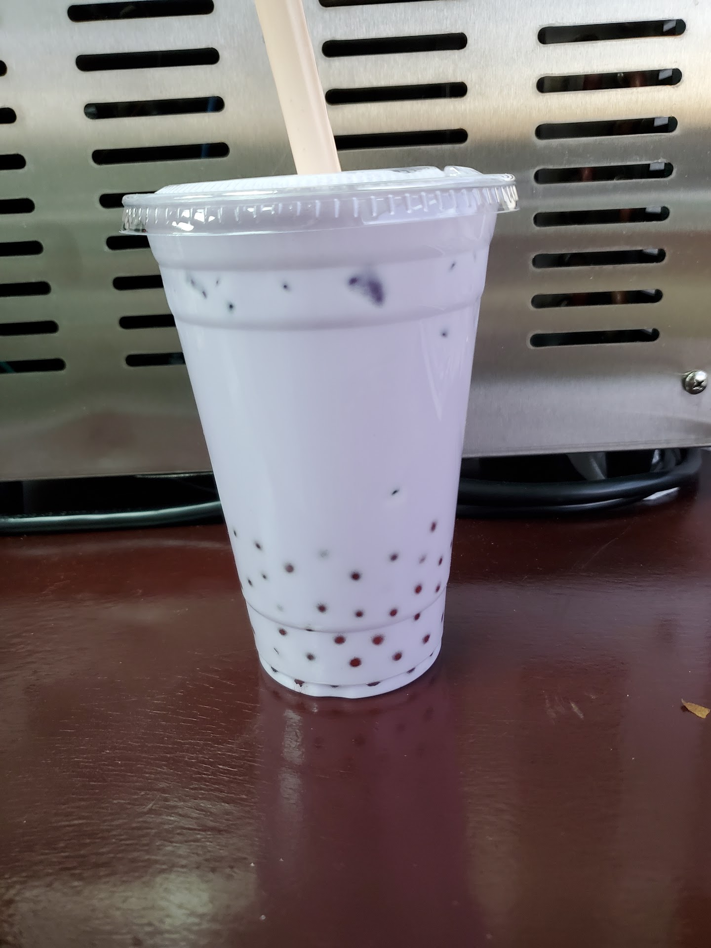 Drink: Taro Boba tea. The taro powder is perfection. Unfortunately, they were out of tapioca pearls, so I got strawberry bursting bubbles that complemented the taro quite nicely. I do hope they get some more tapioca pearls soon. I missed the chew.