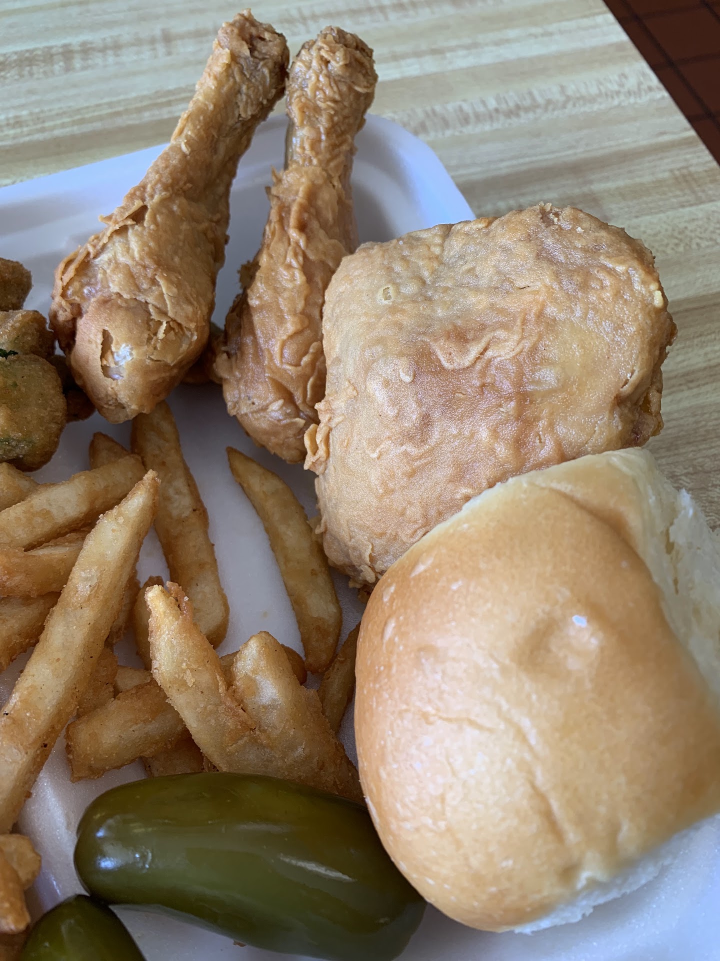 Meh. The chicken was fine. Good, even. But it's fried chicken. I've had better, I've had worse. Was still overpriced for what it is. They were out of half the stuff on the board and half the stuff they did have, wasn't advertised. The sort of place that if you're a local and know what to order (and when to order it), you probably love. But if you're coming in from out of town, reading these reviews seeking local flavor for a small town meal, maybe give this place a skip.