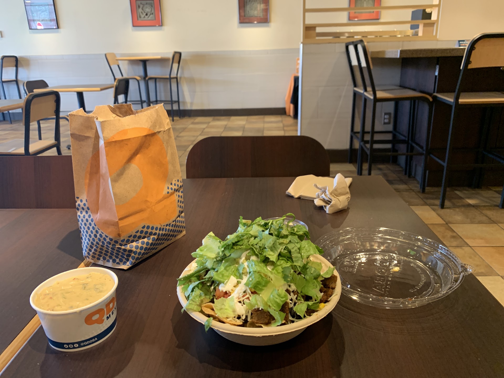 Read moreI was not a happy camper. I opted to not have any rice and asked to substitute beans for what I would have been given in rice. I was given about 3 tablespoons of pinto beans, and then asked for more. I got another tablespoon! I then asked for the new Beyond Meat protein, which I am already skeptical about, but I had it at another Qdoba and it was quite delicious. This "meat" was not the same There were large flat chunks as if it wasn't broken apart or stirred and there was no flavoring whatsoever like the previous Qdoba. As we progressed through the options, I asked to have certain items on the side as I am very picky and don't like a big bowl of mess (by the way, I got a bowl if you haven't gathered that) The server seemed very annoyed, therefore I was annoyed. Boom. We're both annoyed. The cheese was cold and clumpy and smelled kinda strange. I ate some corn out of it and threw the whole bowl away. I will not be returning to this...