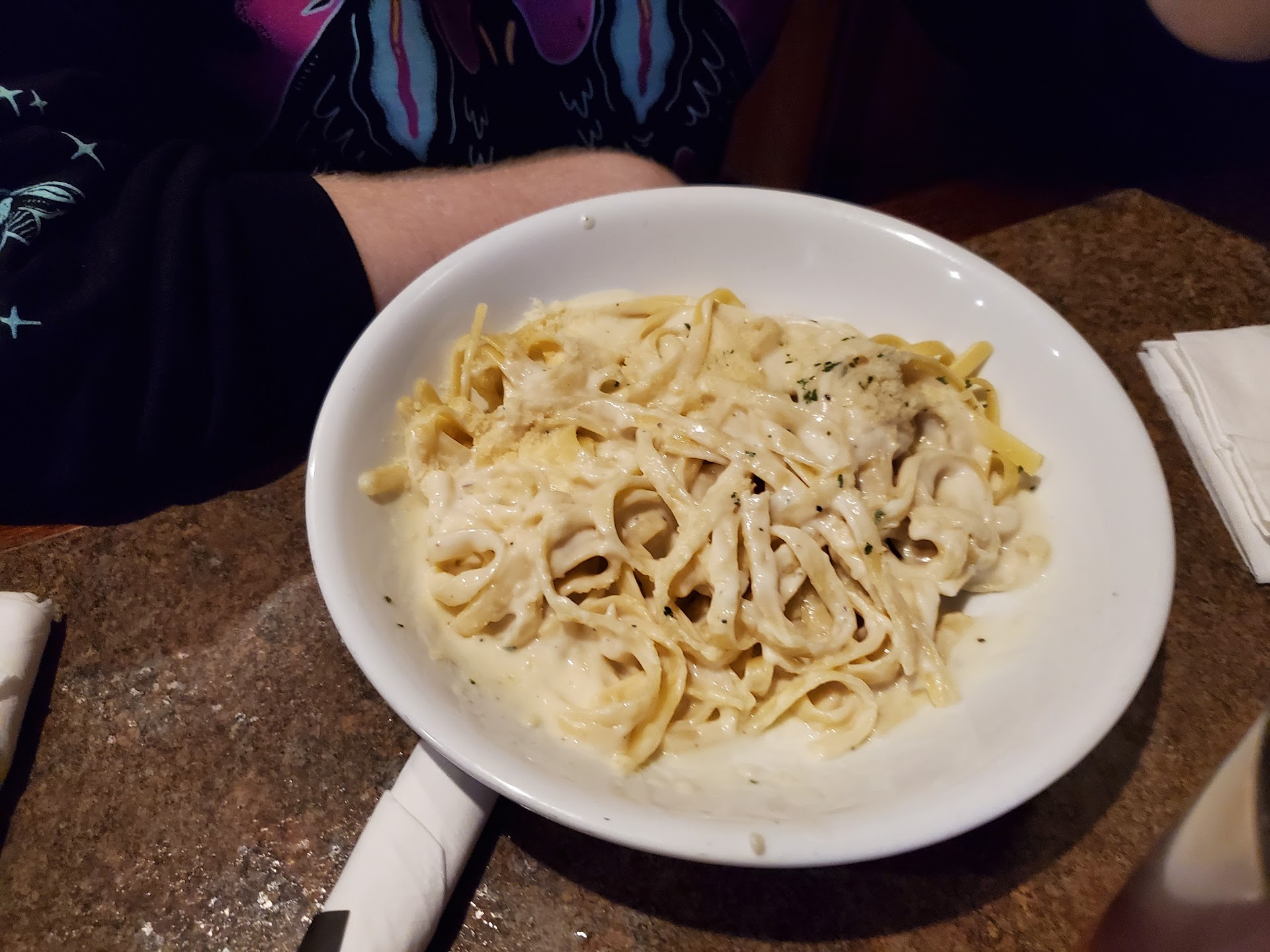 Chicken Parmesan - my husband said that it was very good. Good portion of chicken and plenty of pasta. He did mention that he wished he chose meat sauce like I did (doesn't like chunky marinara). He would order this again.