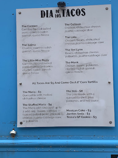 We wandered by the truck on accident and each ordered one taco, just to have a snack. He was going feral over how delicious his was, and immediately returned to the truck when he finished it only to realize they had closed just a minute earlier. I looked them up to find out they'd reopen in a couple hours. We returned then so he could have three more Little Miss Piggys for dinner. I tried the Teri Lynn and one other one that had chorizo and beans, and they...