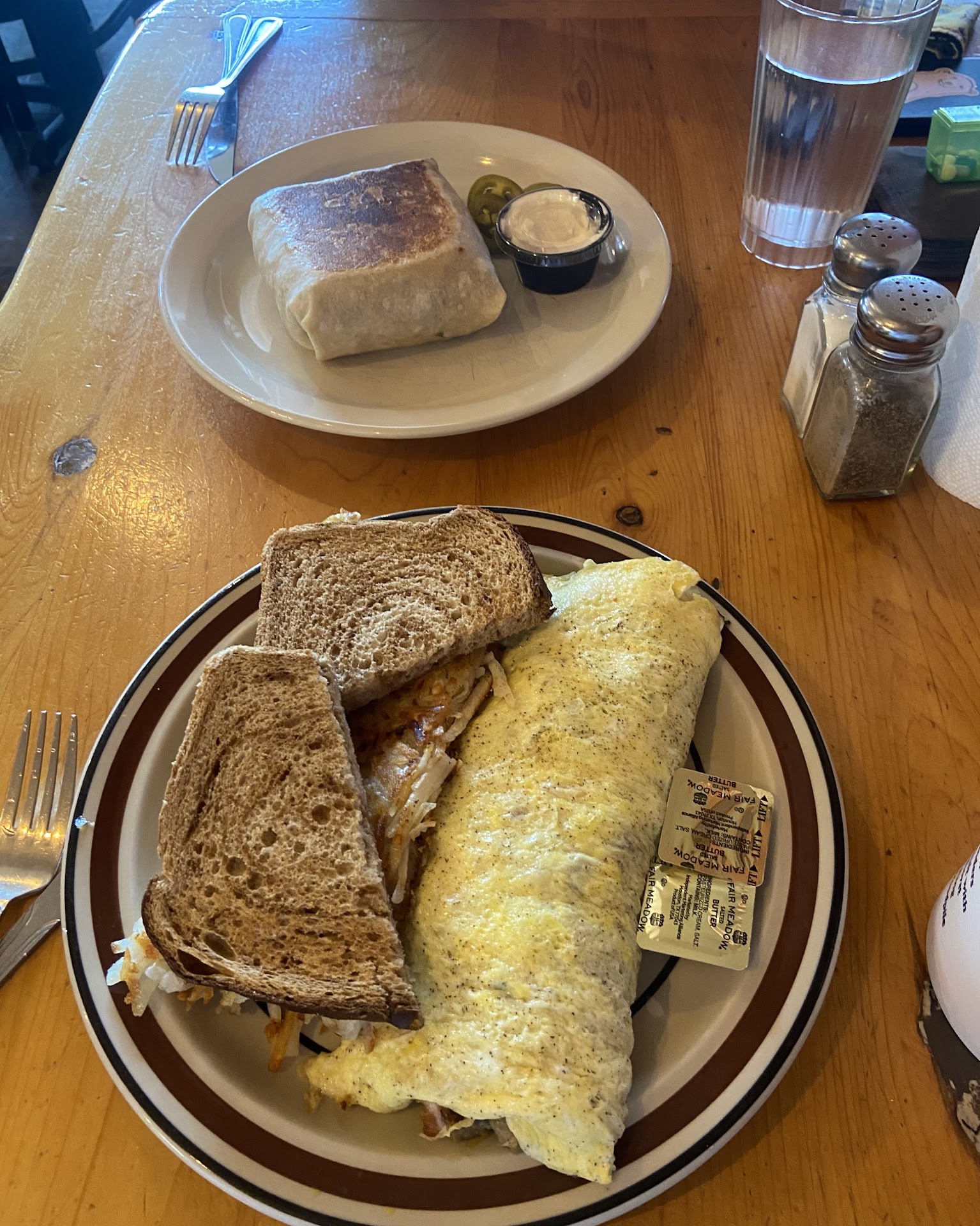 I got to eat my omelet about 15 minutes after my husband finished his breakfast hash tag.