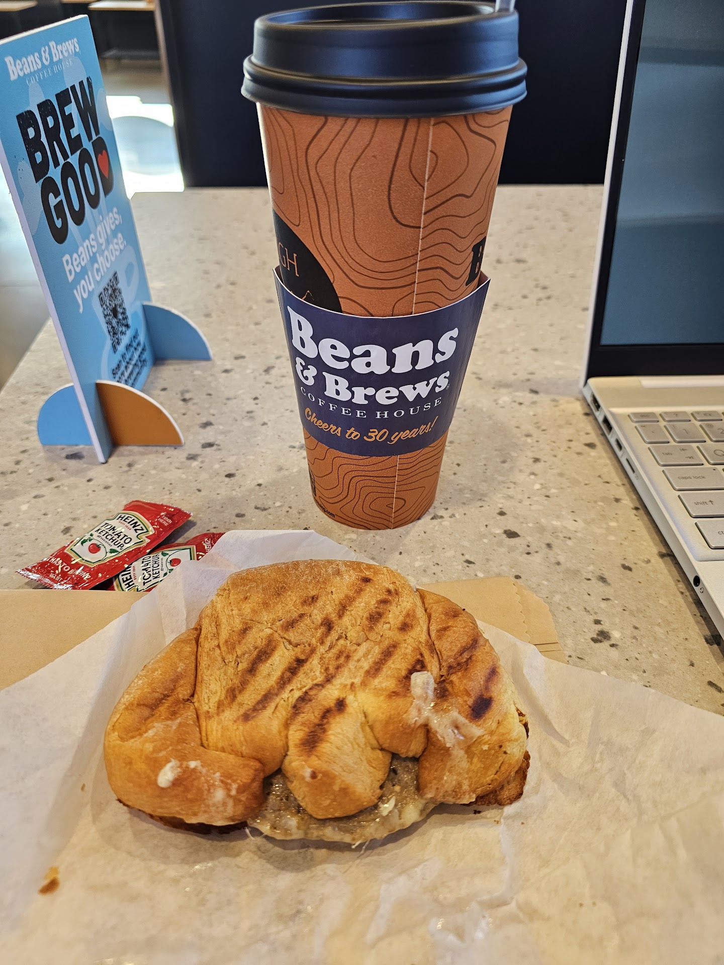 Read moreI've tried this particular Beans and Brew a few times over the past year since it's been open, my biggest problem is that they have an order ahead feature but they never make the food or coffee until you get there which kind of defeats the purpose of ordering ahead. I've tried ordering earlier and giving more time and that doesn't seem to help either. People typically Order ahead when they don't have time to wait so I don't even understand why they have that as an option at this point also the coffee is typically not very good and the last time that I got egg bites they were still cold in the middle after waiting for them to be prepared even though I had of course ordered ahead. It's sad because the location is super convenient for me but it just hasn't been worth...