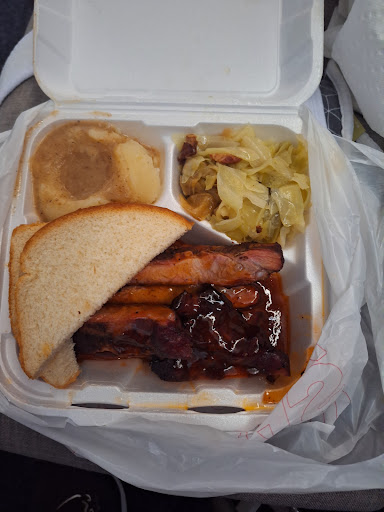 Wow!! We're from VA & have some delish BBQ on the East Coast but this place...BEST YET!! Fried ribs!! Never heard of them & wow I'll be drooling over the memory for days! Delish BBQ sausage! Homemade southern sides: cabbage, potato salad, coleslaw, black-eyed peas!! Water boiled cornbread! All so so so good!! You get alot of food for the price. If you're not in the mood for a meal try the sloppy joe sandwich! This is NOT the Hunt's sloppy joe we grew up with, this is chopped rib meat! YUMMY!! And leave room for dessert: homemade banana pudding -no vanilla wafers here but melt in your mouth yummy flavor! & several varieties of homemade cakes! It's off the beaten path, in a 100 yr old grocery store bldg & it's worth the drive!! Mr White is friendly & knows his BBQ. He won't let you leave hungry!! He's been bbq for 25 yrs. ...