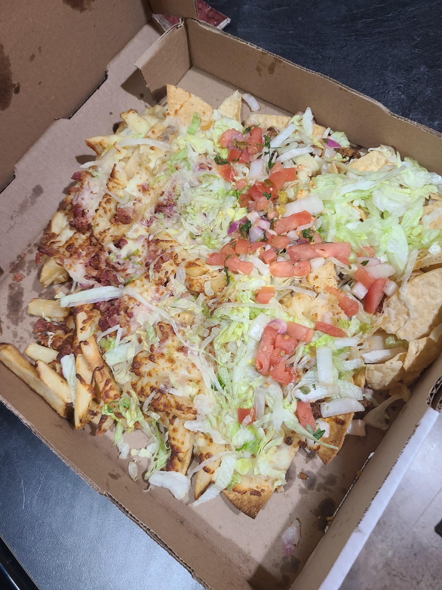 (Picture of food does not contain the mozzarella sticks, onion rings, or chicken fingers. We really tried to salvage what we could for our family, but it was difficult with the quality. It pretty much was a box of bunch of cold food...