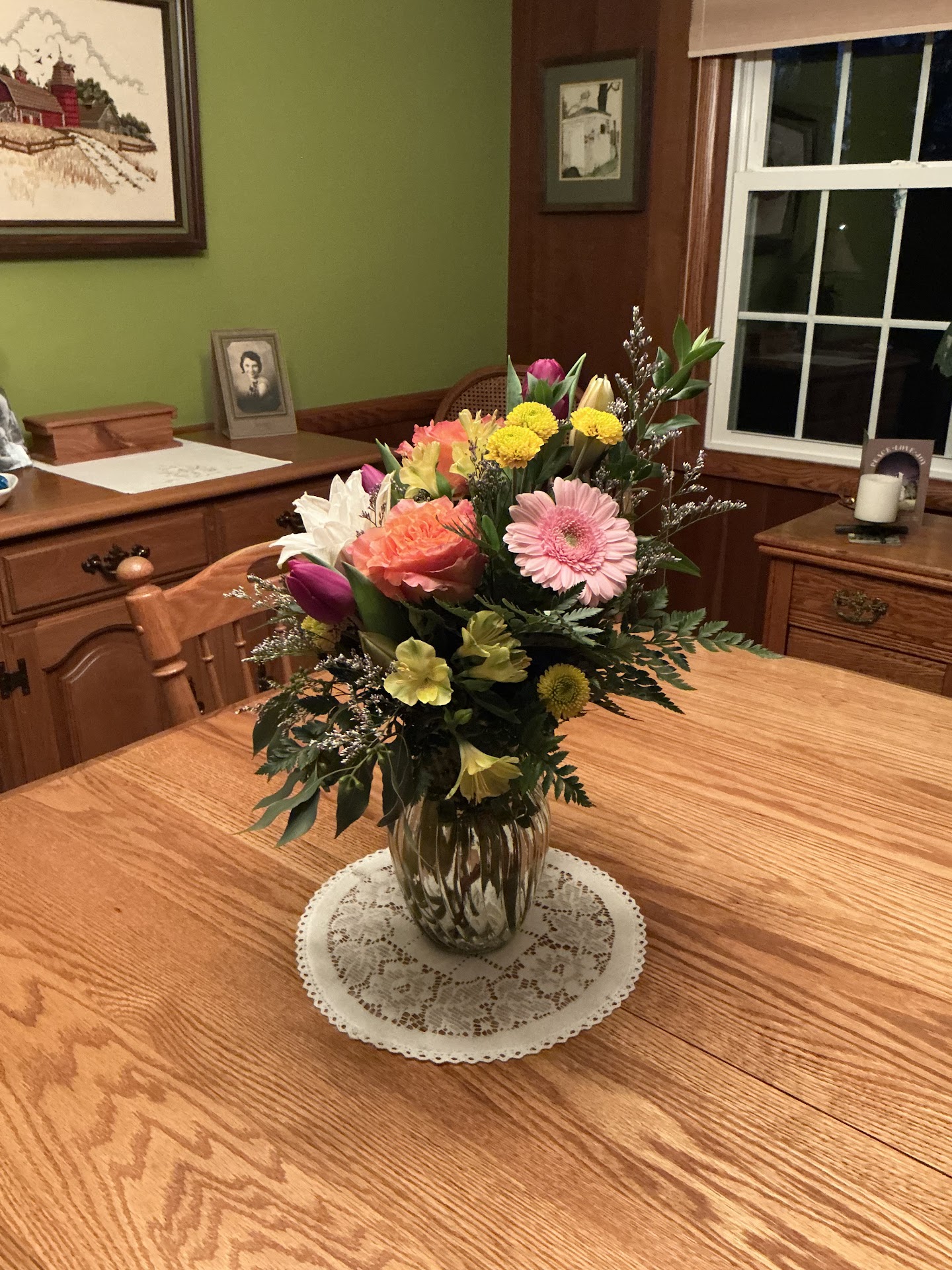I placed an order over the phone February 26th to be picked up March 2nd. They were to decorate my infant daughter's grave for what would have been her 18th birthday. I chose a casket spray but explained I liked the type of flowers and the layout but I wanted different colors. I asked for ideally purples but I wanted it to be bright, cheerful and celebratory as they were not funeral flowers but birthday flowers. I was specifical that I wanted minimal white with NO PINK. When I picked them up the were mostly white with pink. When I said they were supposed to be purple I was told they couldn't get purple. I understand things happen but they should have called me to tell me. They did not and instead I got exactly what I said I did not want. I was so upset I cried. I spent almost $250. I wanted to say something more when I was there but I didn't trust myself to keep my emotions in check. I had to take them because there was no way to get her other flowers that day. I don't get to celebrate the way other parents do or give normal gifts. Instead I decorate a grave every year. I spent hours looking through flowers shops and designs to get what I thought were the perfect flowers and put all my heart into that decision. There are no words for my...