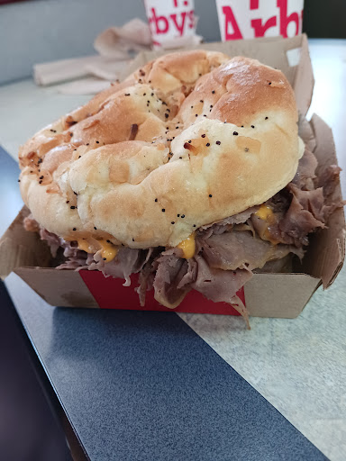 Something has changed at this Arby's, or maybe you have to order inside instead of drive thru. It had been awhile, but Arby's was promoting burgers, and I wanted to treat my 👧 to a new burger. Well she got the French dip, I got the new bacon ranch burger. How can a place known for its roast beef, sandwiches, and curly fries et al, get this wrong? First it's smaller than burger from Hardee's, Burger King etc, and it was luke warm. The fries were cold, and all in all very disappointing. It's too bad, as done right, burgers can add a profitable menu item. There is no excuse for cold food, meant to be hot. It was busy, and I imagine burgers and fries were sitting out to long. If I wanted a cold sandwich, I would've ordered one of the clubs. Will I eat here again? Not for a period of time. I'll go to Hardee's or Culver's, for the same money or so, I get a...