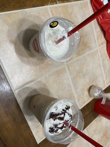 Read moreI had a really good time here the other day, me and my friend had just gotten off school and I offered to get them a drink and something to eat since we had rehearsal for a musical that night. When we ordered the staff was super nice! They even gave my friend an extra Oreo cake bite because we walked in the pouring rain and we were soaked which was super nice of them! The staff seemed really friendly giving off a good atmosphere! Our drinks and food were also very nice and yummy, I had ordered the Strawberry matcha and mini donuts and my friend had order the Oreo blender and Oreo cake bites, the food was warm and yummy to eat! I definitely recommend this spot! (The photo is when I got to my rehearsal and it was still...