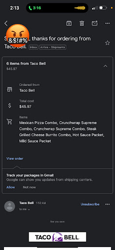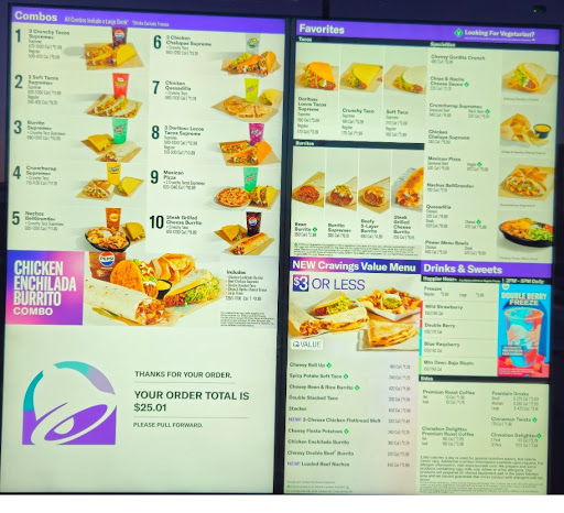 Ordered 6 Soft Shell Taco Supremes in the drive thru. Paid $20. Recieved 6 tacos with lettuce meat and cheese. In case you're wondering, Taco Supremes come with seasoned meat, cheese, lettuce, tomato and sour cream. I paid for the supremes, received the regular tacos, which are $1.00 + less than the Supremes. When I called to ask if the Taco Supremes were changed the gal that picked up just said Taco Bell so quickly I thought it was a recording. Phone etiquette is a thing. I would recommend training on answering the phone in a professional manner. They did take down my information to come back and get 6 free Supreme tacos but only if I talk to the manager. I appreciate that they want to fix the mistake by offering free food but I think it might be more cost effective and prudent to offer employees adequate training, even if just a refresher. The cashiers taking the order and giving me my order were very nice though. I just hope in the future that I won't have to check my bagged order like another fast food restaurant down the street who is notorious for filling orders...