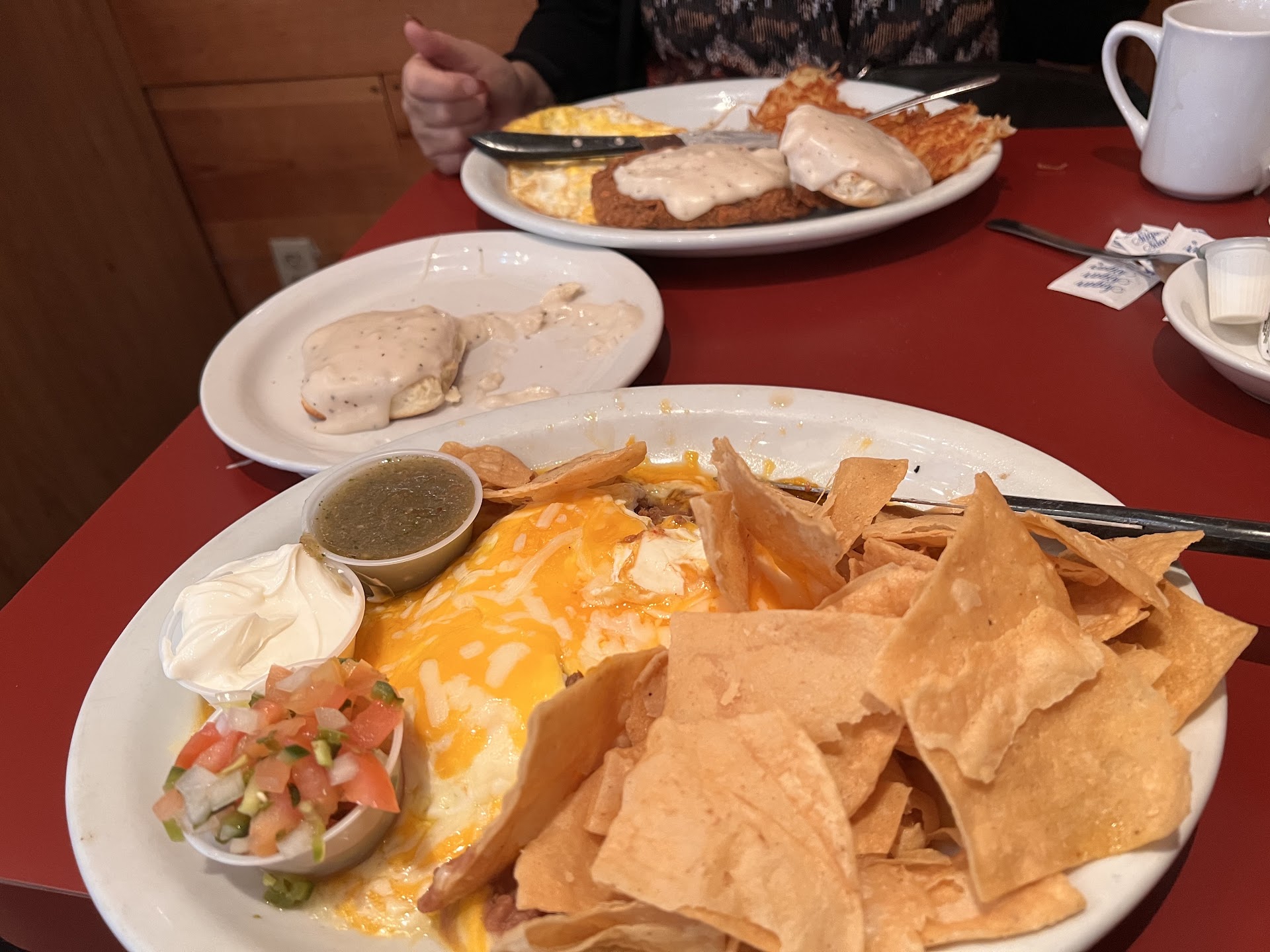 Read moreTodayâs visit would have been a two star, but two stars are added for past experiences that were actually good. Today I veered off course & tried something off the pancake & French toast menu. . .I ordered Huevos Rancheros & what I was served was a plate of thick yellow cheese & chips. I wasnât expecting so much yellow cheese on a dish that by custom is not served with yellow cheese. I sent the plate back & expected to be asked to replace the dish with a different order but no server came back to our table. We never got our coffee refilled either. Normally I treat my parents out to brunch here when I visit them & itâs a great experience. I felt bad that my momâs quality of service was affected by me sending the dish back. They did remove the dish from our bill which wasnât something I was expecting, normally I pay for the dish & the new order when Iâve had this happen at other restaurants since Iâm the one that ordered the food I donât have a problem doing so. I was very disappointed with the service today, not just the quality of the dish I ordered, but I would still give this place the opportunity to serve you good food just donât order the Huevos Rancheros & send the food back because they will quickly give you your bill & get you to just leave instead of trying to serve you...