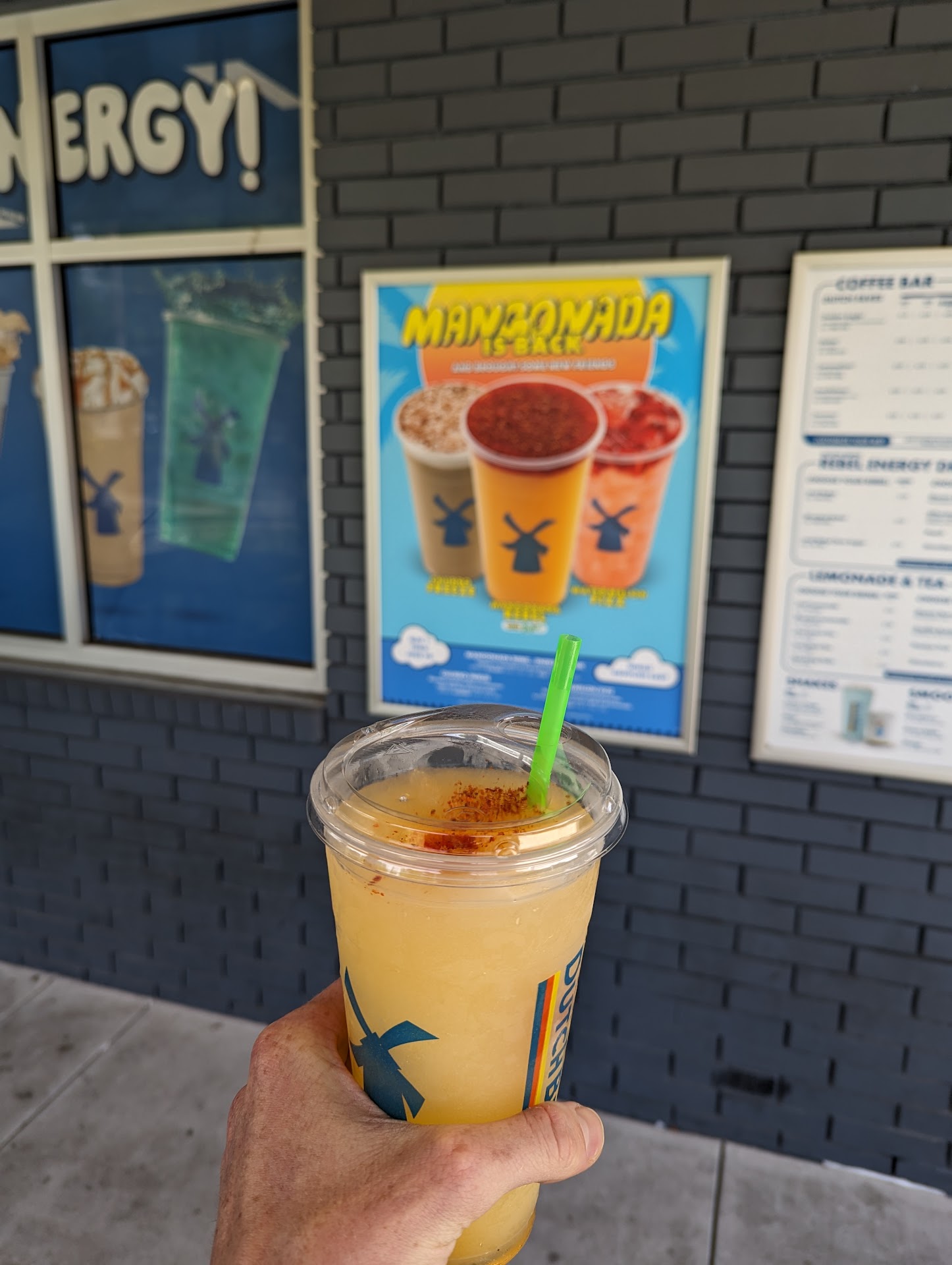 Was here yesterday too around 3pm before all the craziness today and was one of few people to get a drink during one of their random test runs, or whatever it was. Came back again today for the friends and family day from 4pm-8pm which the regional operator invited me to attend. Showed up half an hour early at the walk-up window around 3:30pm, was already a group of about 12 high school or middle school students sitting at one of the tables.