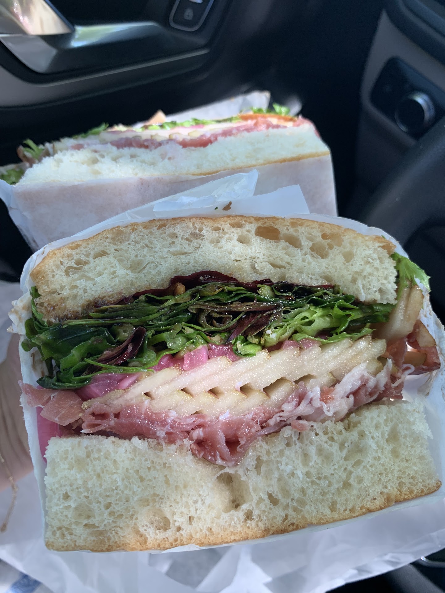 The sandwiches are huge, especially the cold ones. My friend got the chicken breast which was on focaccia and was probably big enough for 2 people. The prosciutto also looked similar. I got the Lucia’s Club which was Turkey and bacon w/avocados and tomatoes and lettuce on sourdough bread and wasn’t very large.